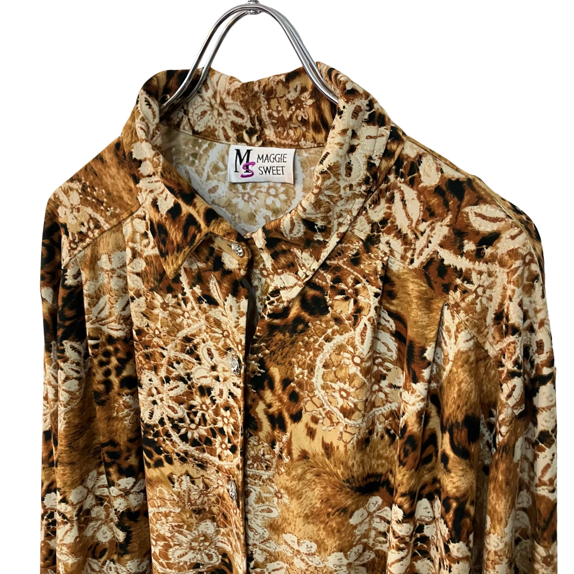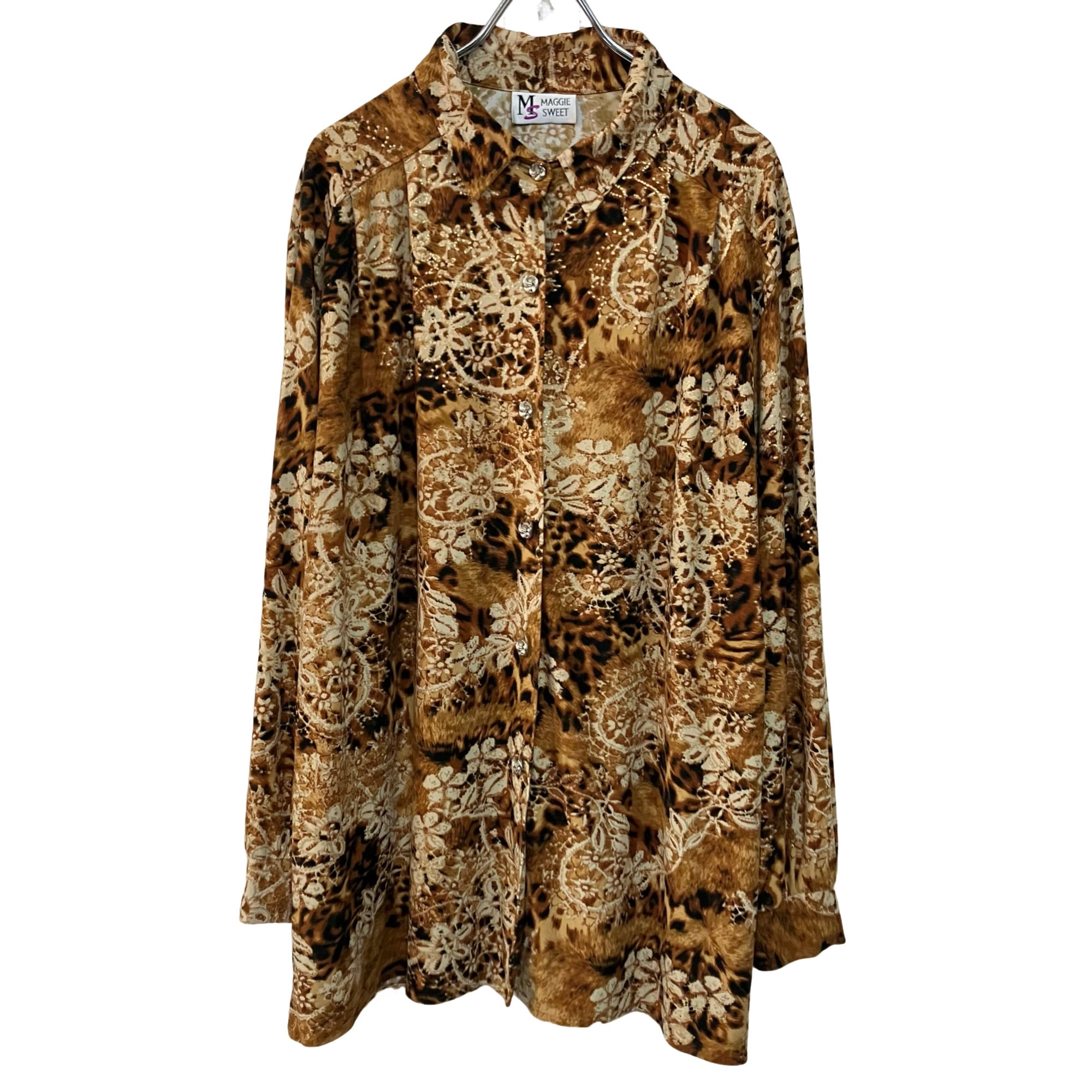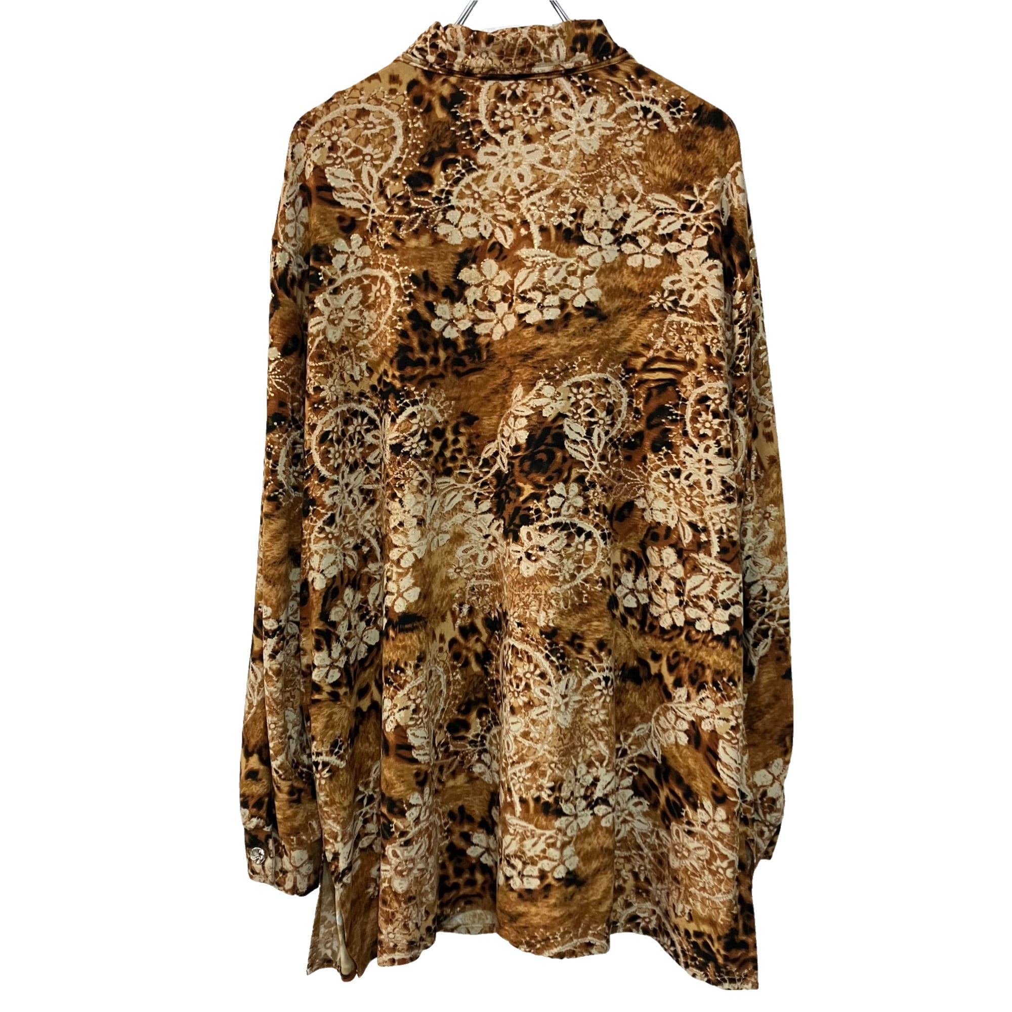 『VINTAGE made in USA flower leopard stretch over shirt』 USED 古着