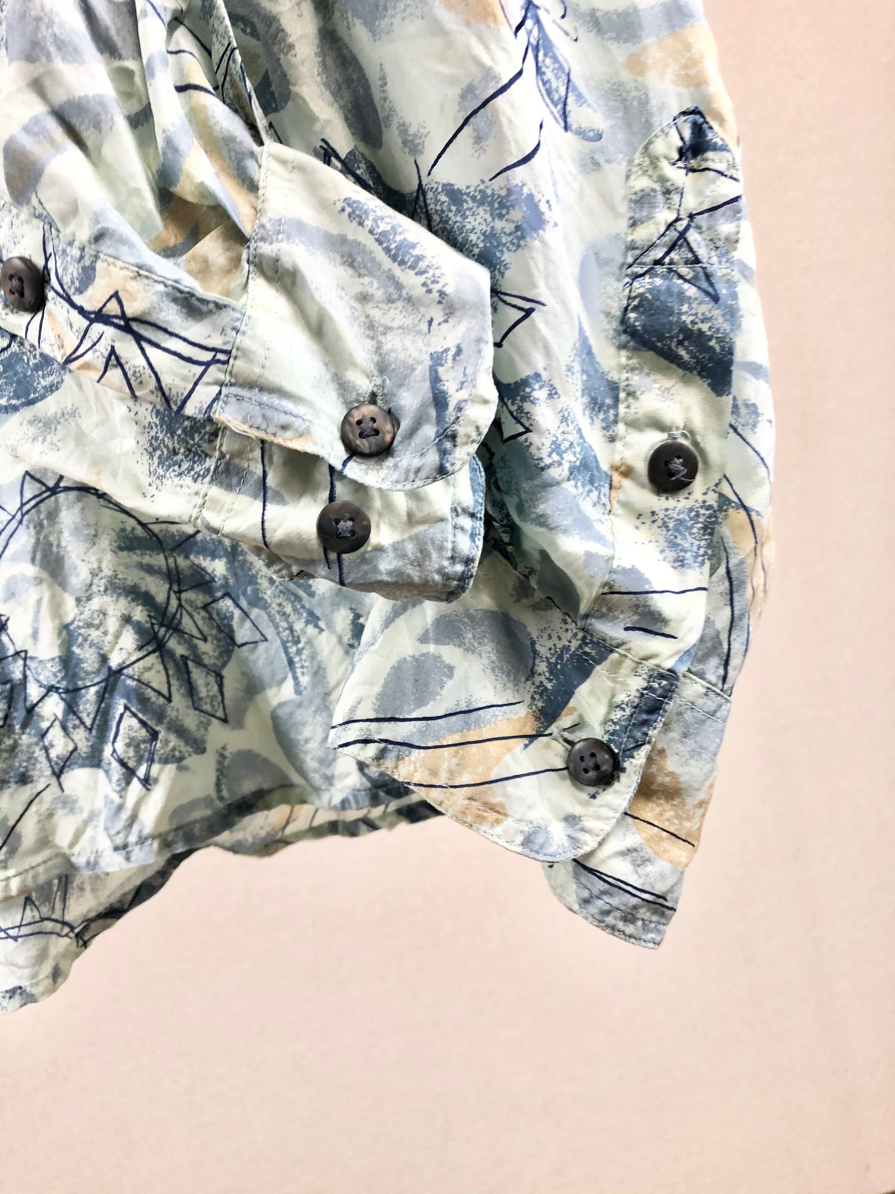 『シルク100% CHIAMARE 』総柄 ビッグシルエット オーバーサイズ シャツ USED 古着