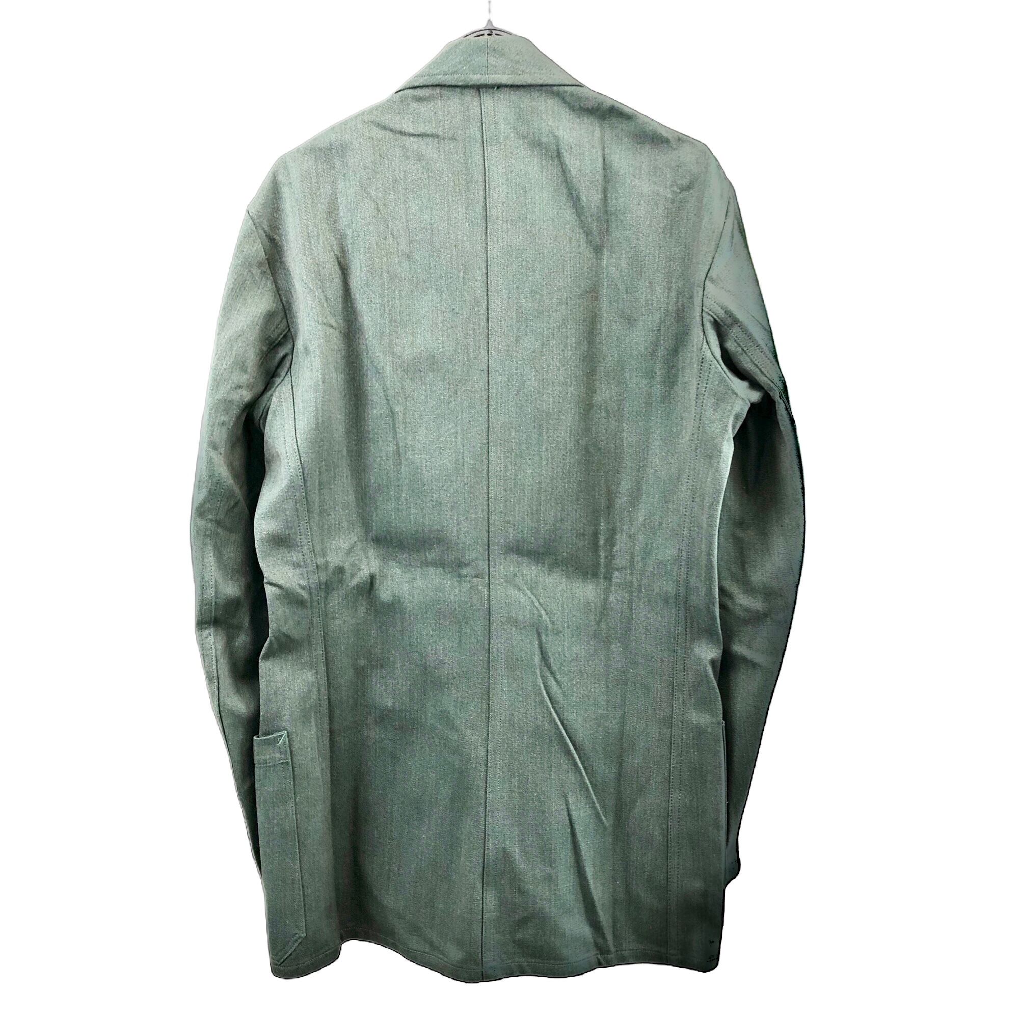 グリーンとブラウンが練り込まれた生地で角度によって玉虫色の様に見えます。プリズナーですがポケットもあり、綺麗目な雰囲気もあるのでデイリーユースで着やすいと思います。