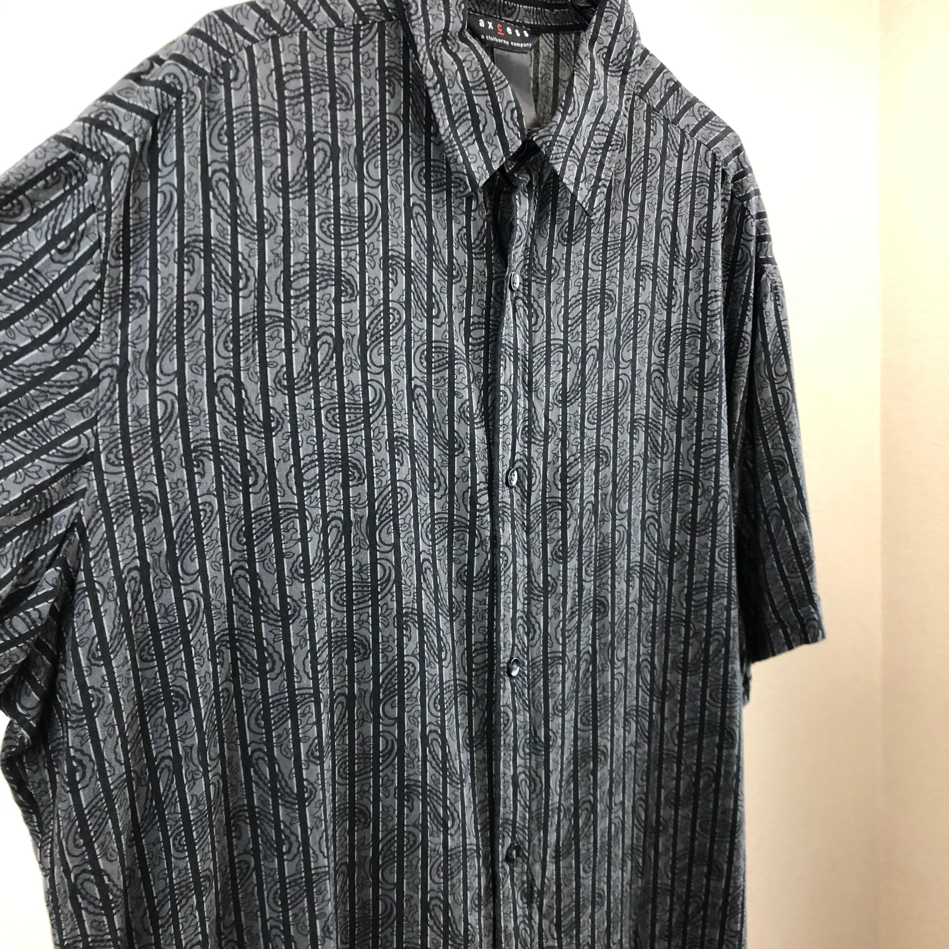 『総柄 ビッグ シャツ』ビッグシルエット オーバーサイズ レーヨン 総柄 ペイズリー ストライプ シャツ USED 古着