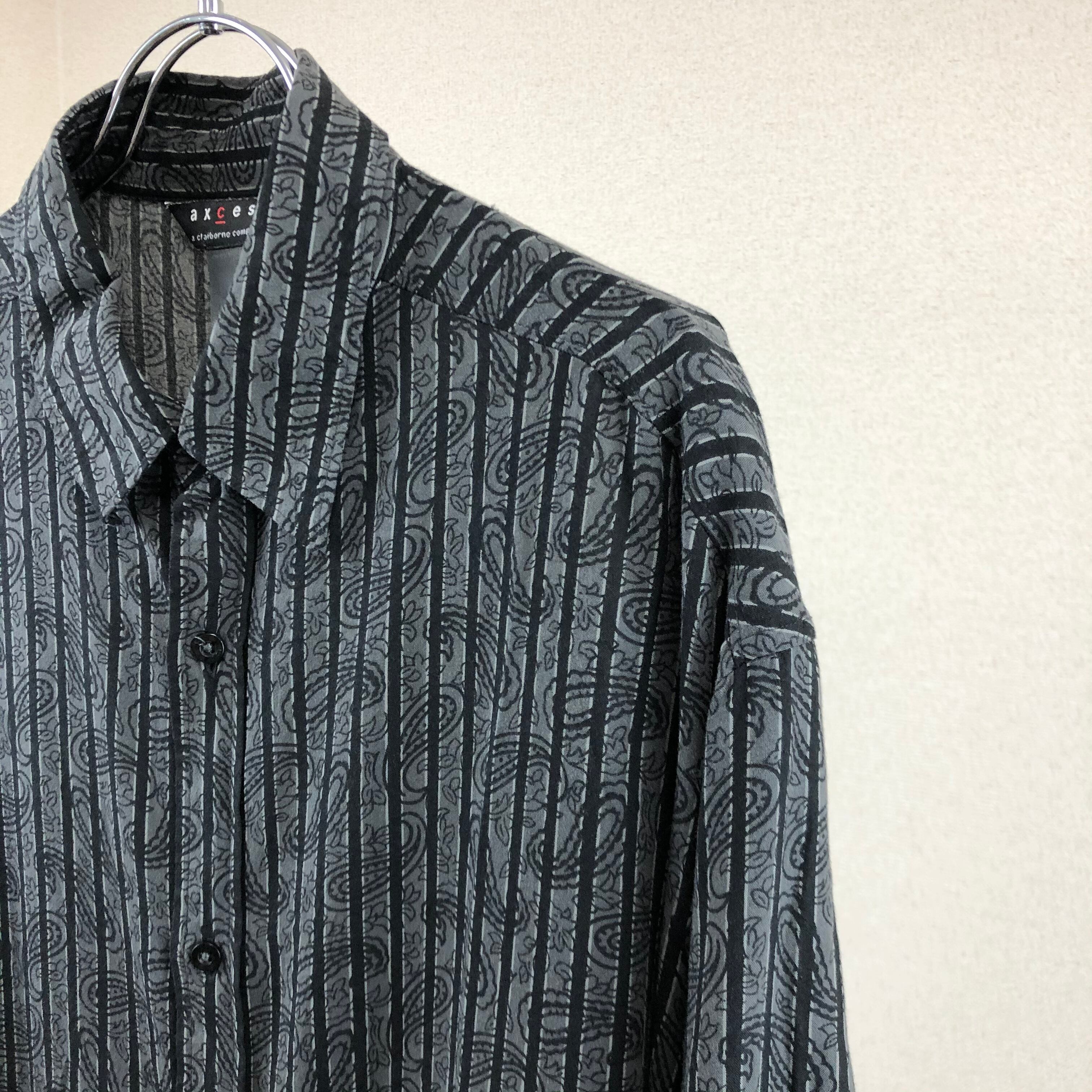 ビッグシルエット オーバーサイズ レーヨン 総柄 ペイズリー ストライプ シャツ USED 古着