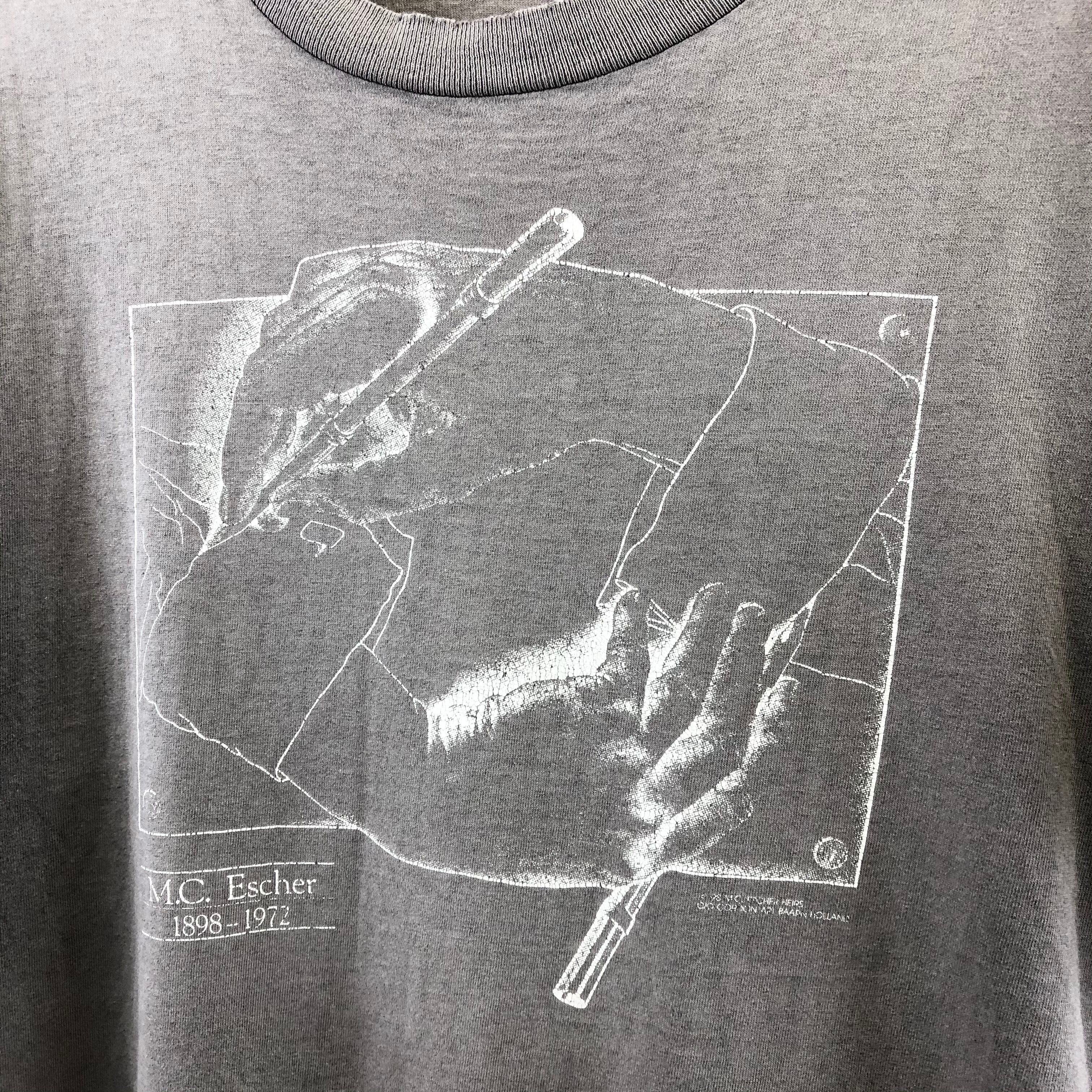 『90s M.C. Escher』 ドローイングハンド 描く手 アート Tシャツ USED 古着