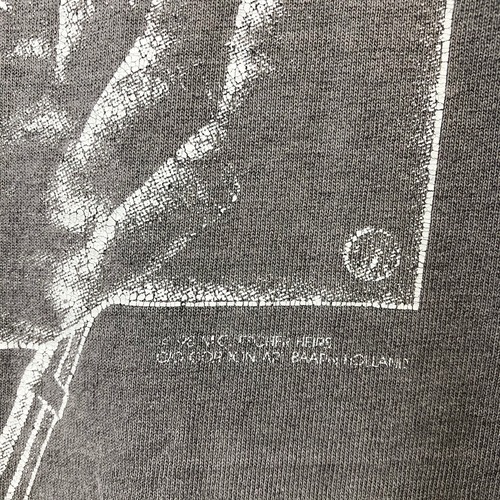 こちらは有名な作品、描く手がプリントされています。袖や裾はシングルステッチで、全体のフェード感もたまりません。