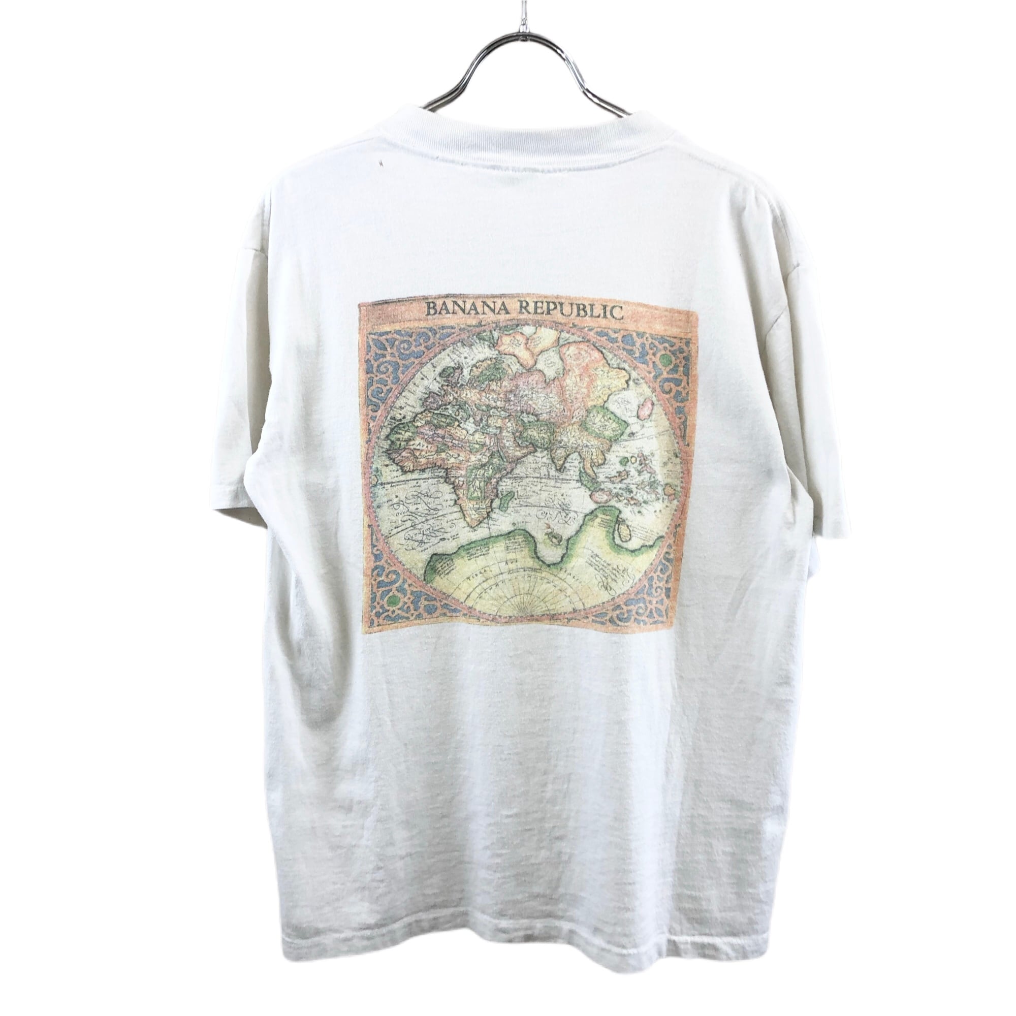『80s USA製 BANANA REPUBLIC 』 ワールドマップ 世界地図 プリント ロゴ ポケT ポケット Tシャツ バナナリパブリック USED 古着 vintage