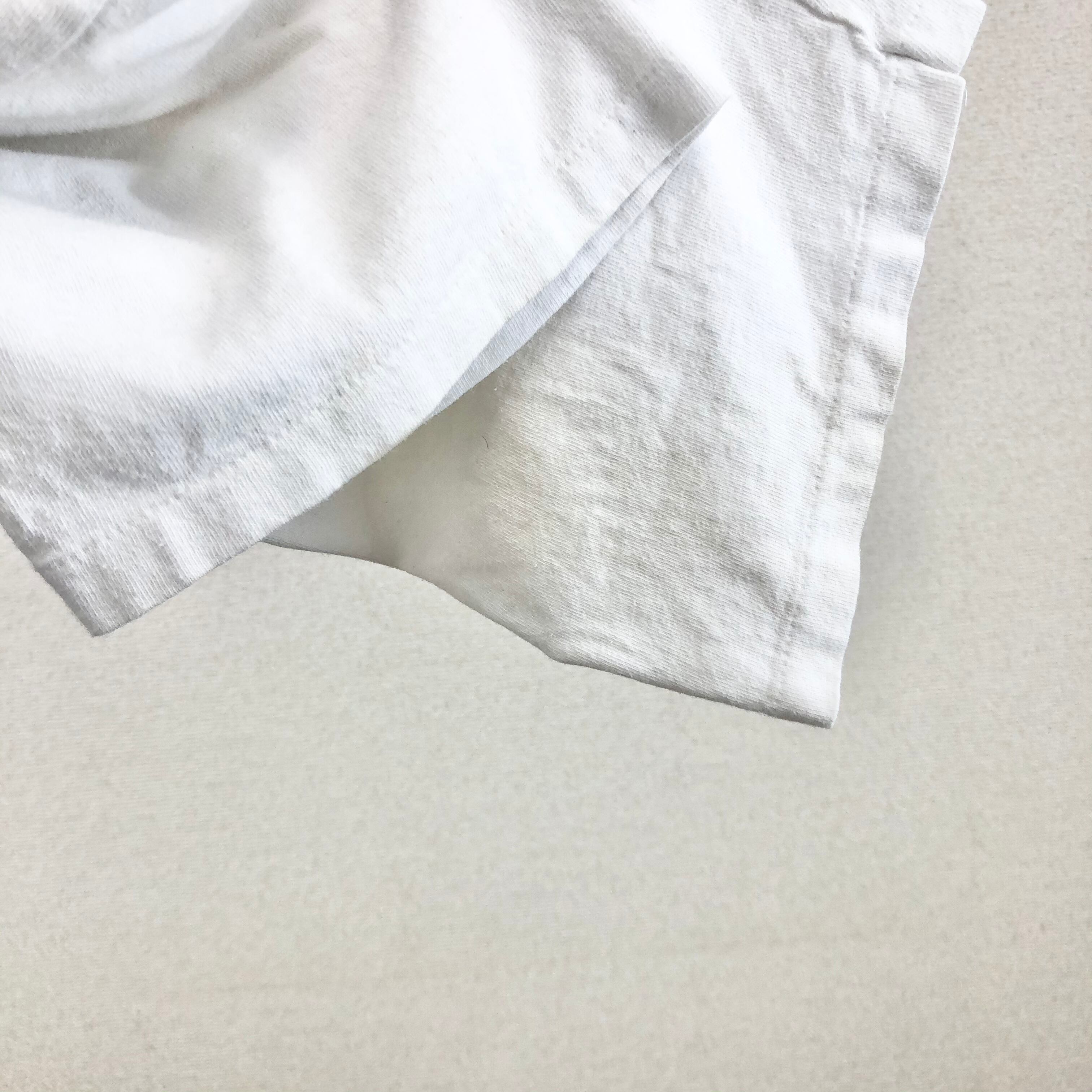 襟付近やバック、プリント、裾付近に小穴があり、フロント襟や、裾付近、袖に薄い汚れがございますが古着の雰囲気ある1着です。