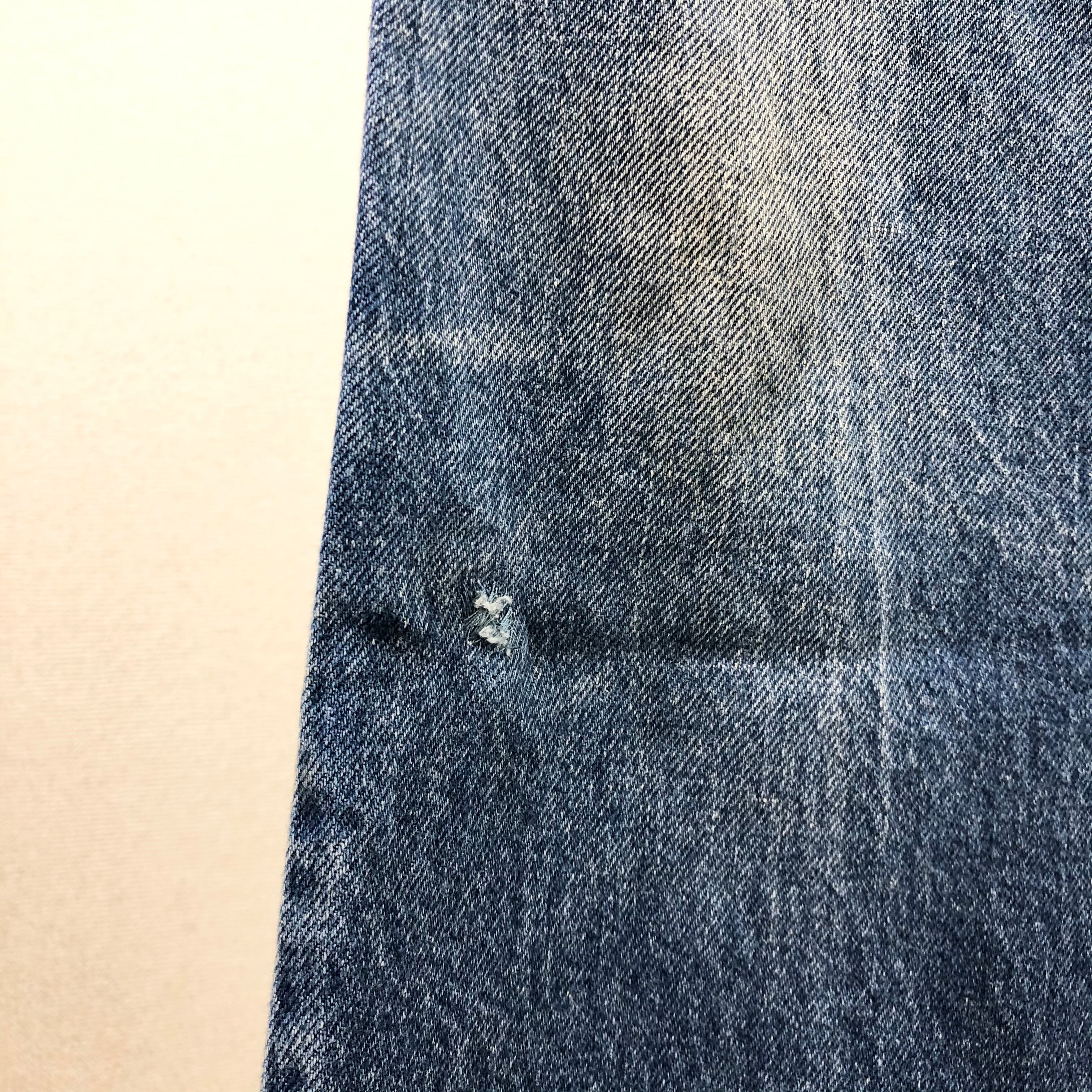 膝に薄い汚れ、右膝付近に僅かなリペアがございますが古着らしい雰囲気ある1本です。