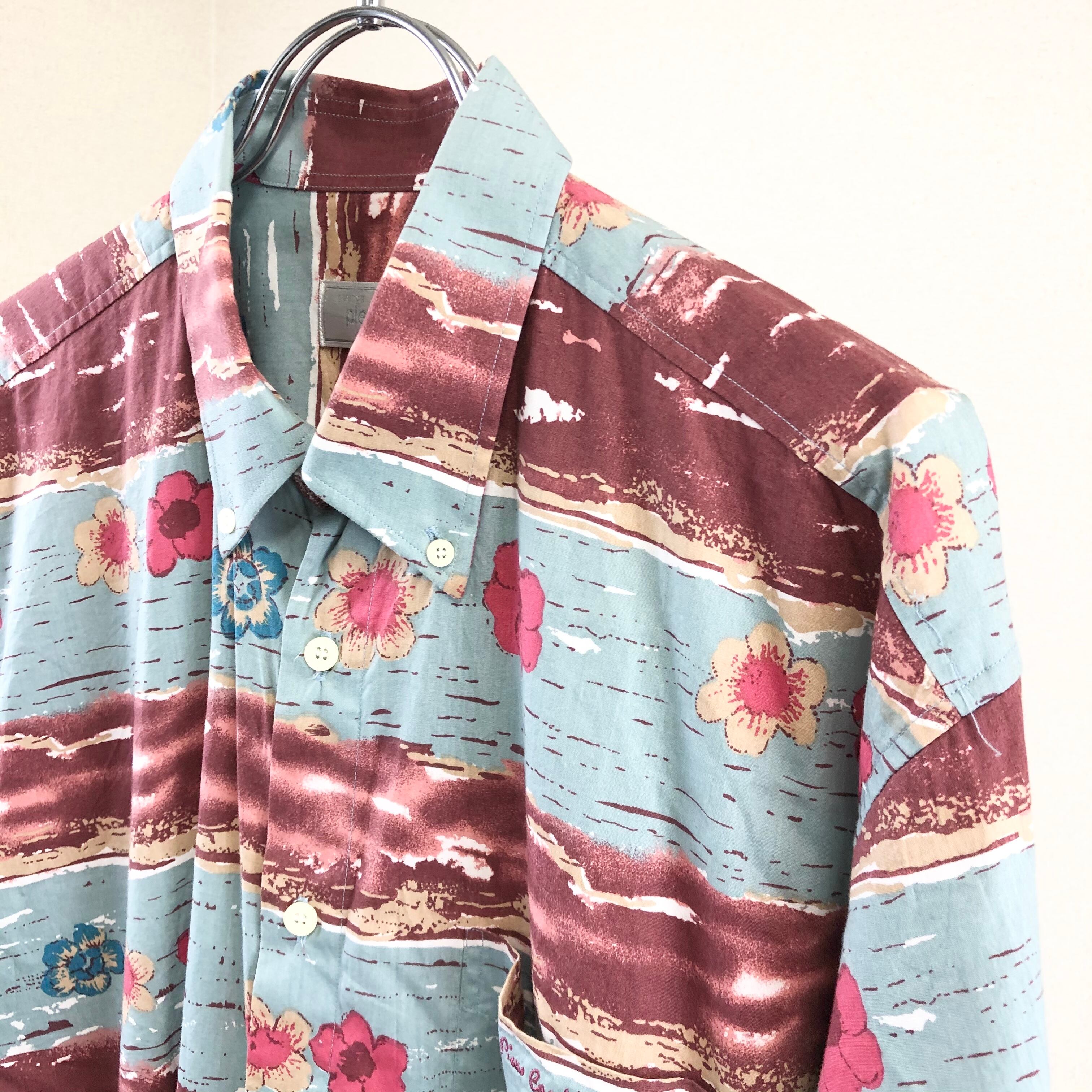 『pierre cardin 』 ビッグシルエット オーバーサイズ 総柄 フラワー ボーダー シャツ USED 古着