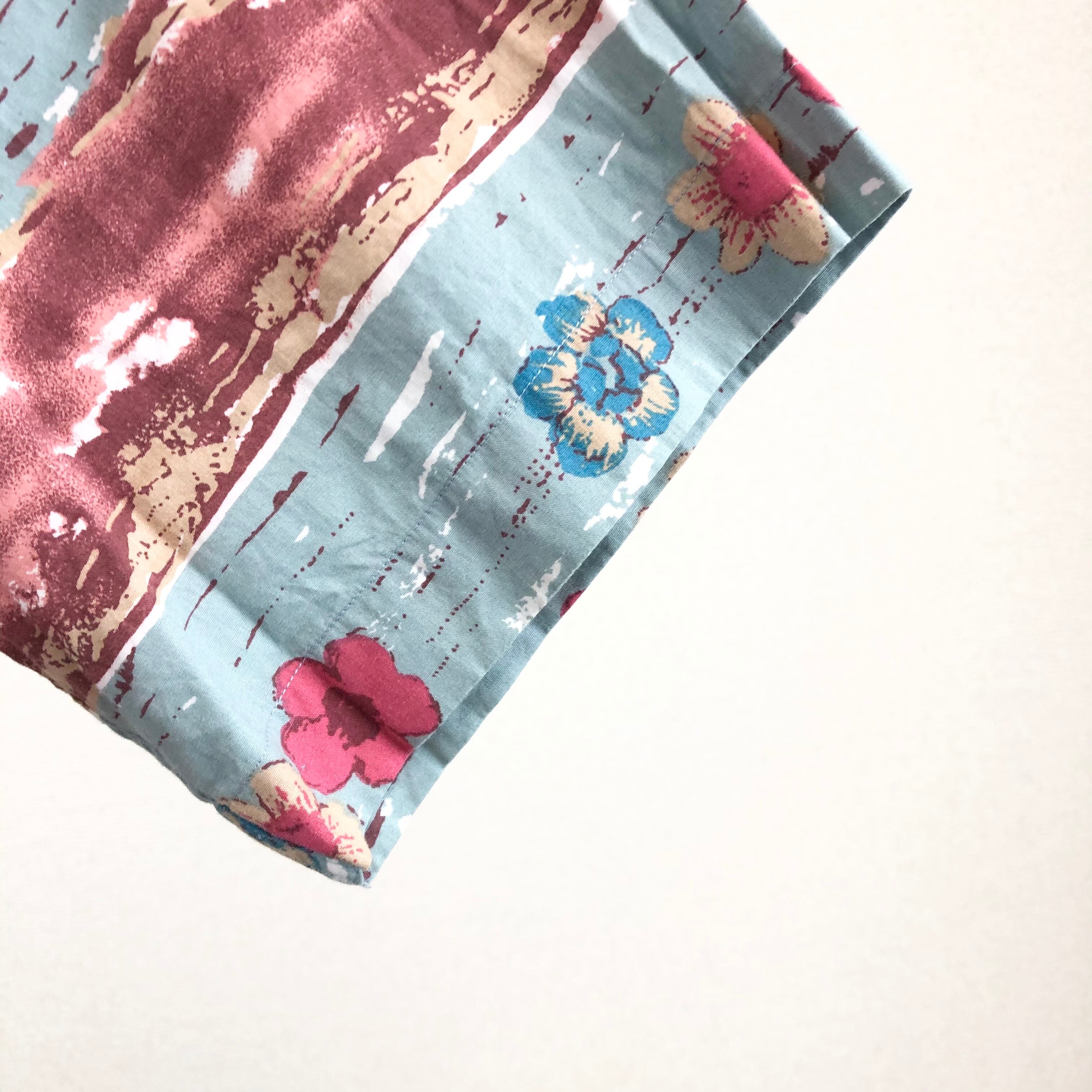 ビッグシルエット オーバーサイズ 総柄 フラワー ボーダー シャツ USED 古着