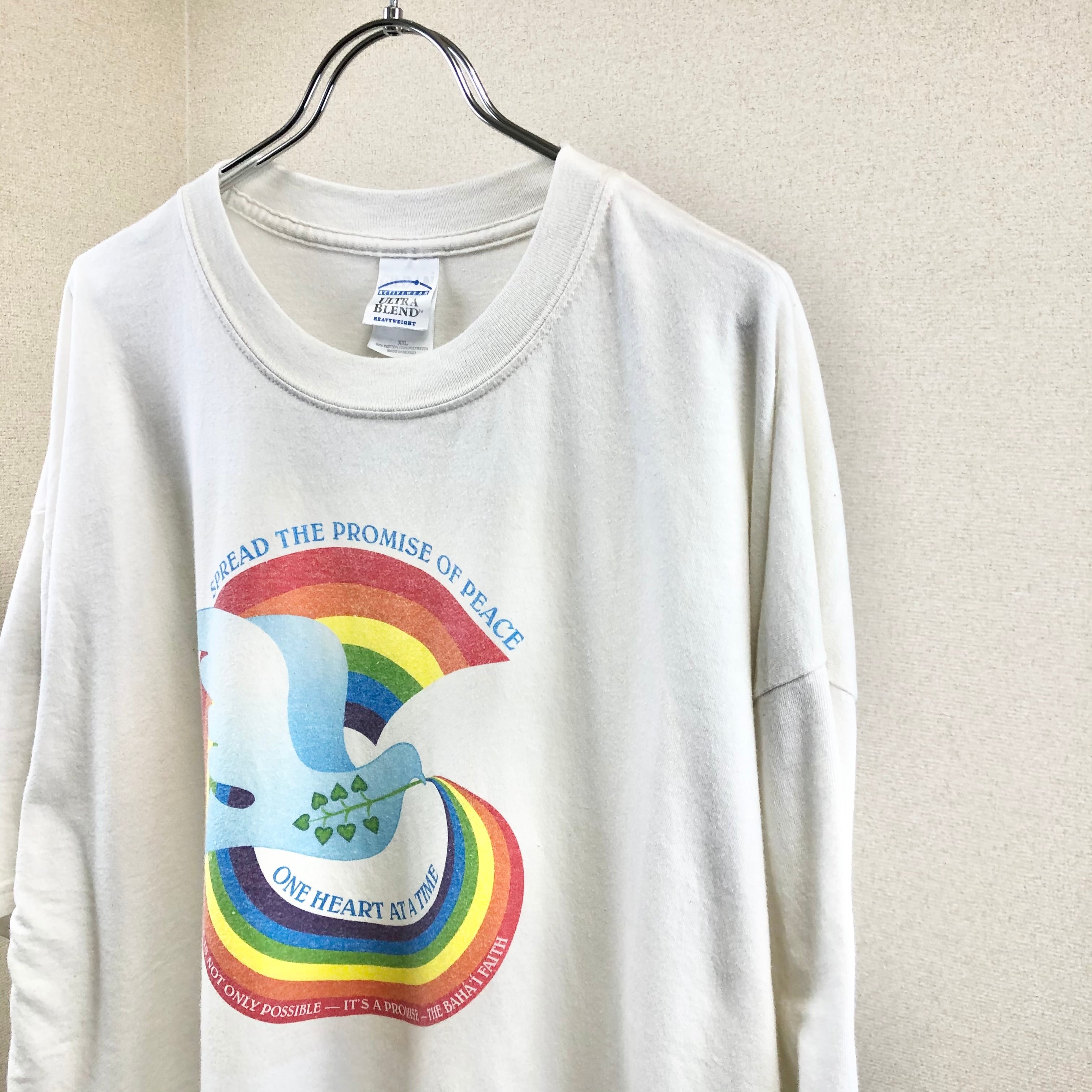 『メキシコ製 ビッグシルエット XXL』 GILDAN piece レインボー バード プリント オーバーサイズ Tシャツ 古着 USED 古着
