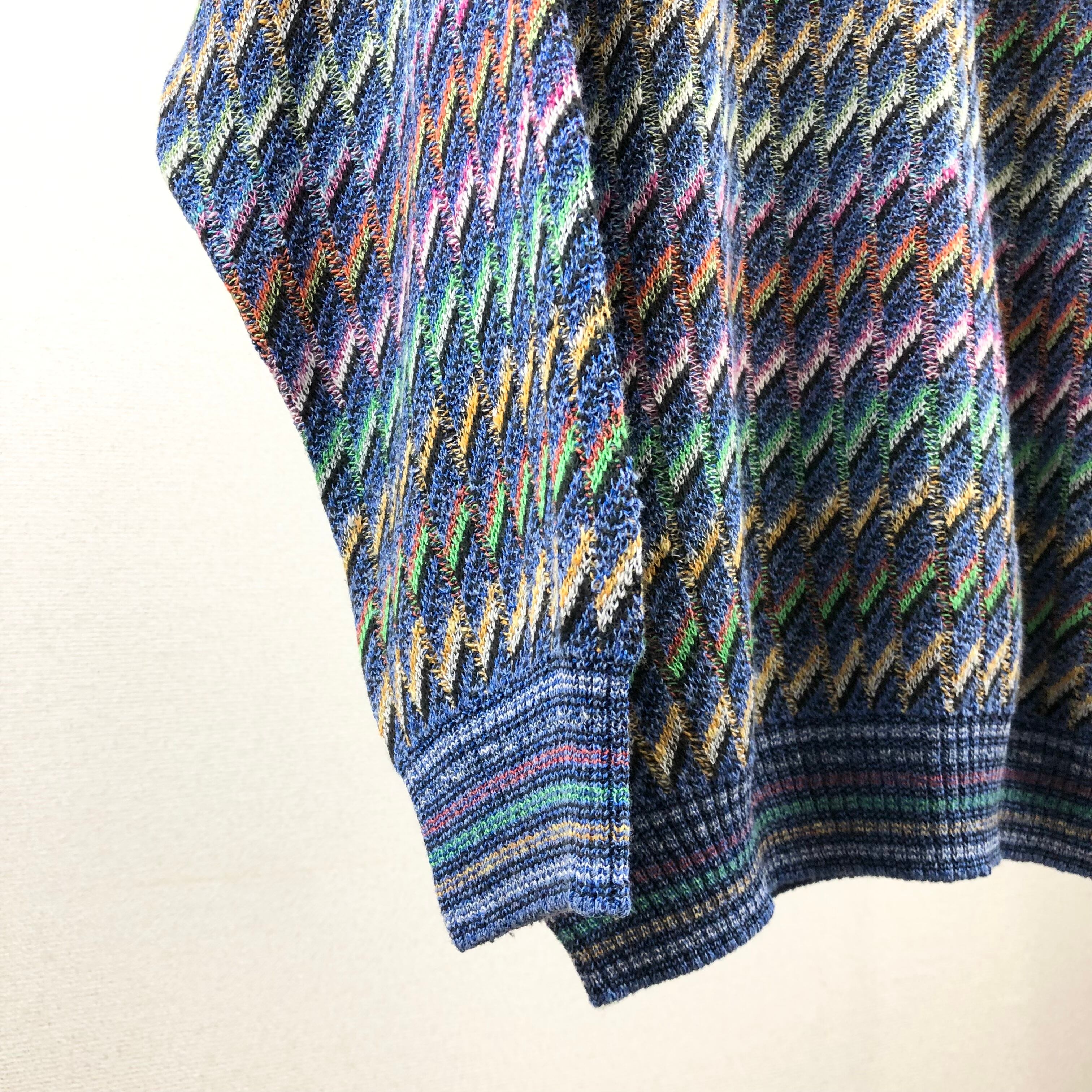 『イタリア製 総柄 ビッグ ニット 』 ビッグシルエット オーバーサイズ レインボー 幾何学 総柄 ニット セーター USED 古着