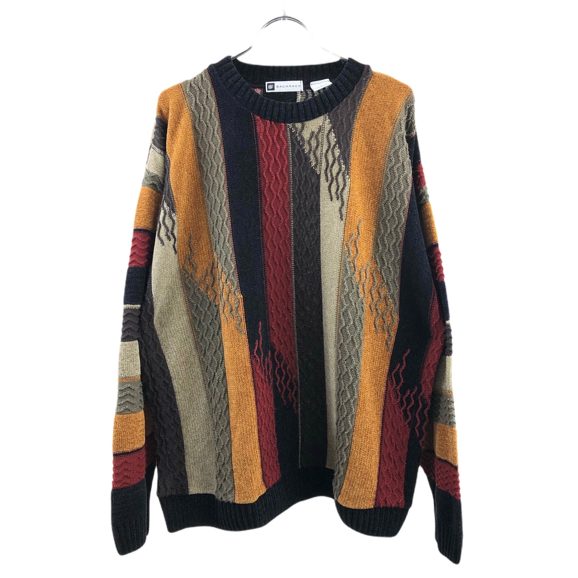 『USA製 BACHRACH ニット 』 ビッグシルエット オーバーサイズ マルチカラー 3Dデザイン ニット セーター USED 古着