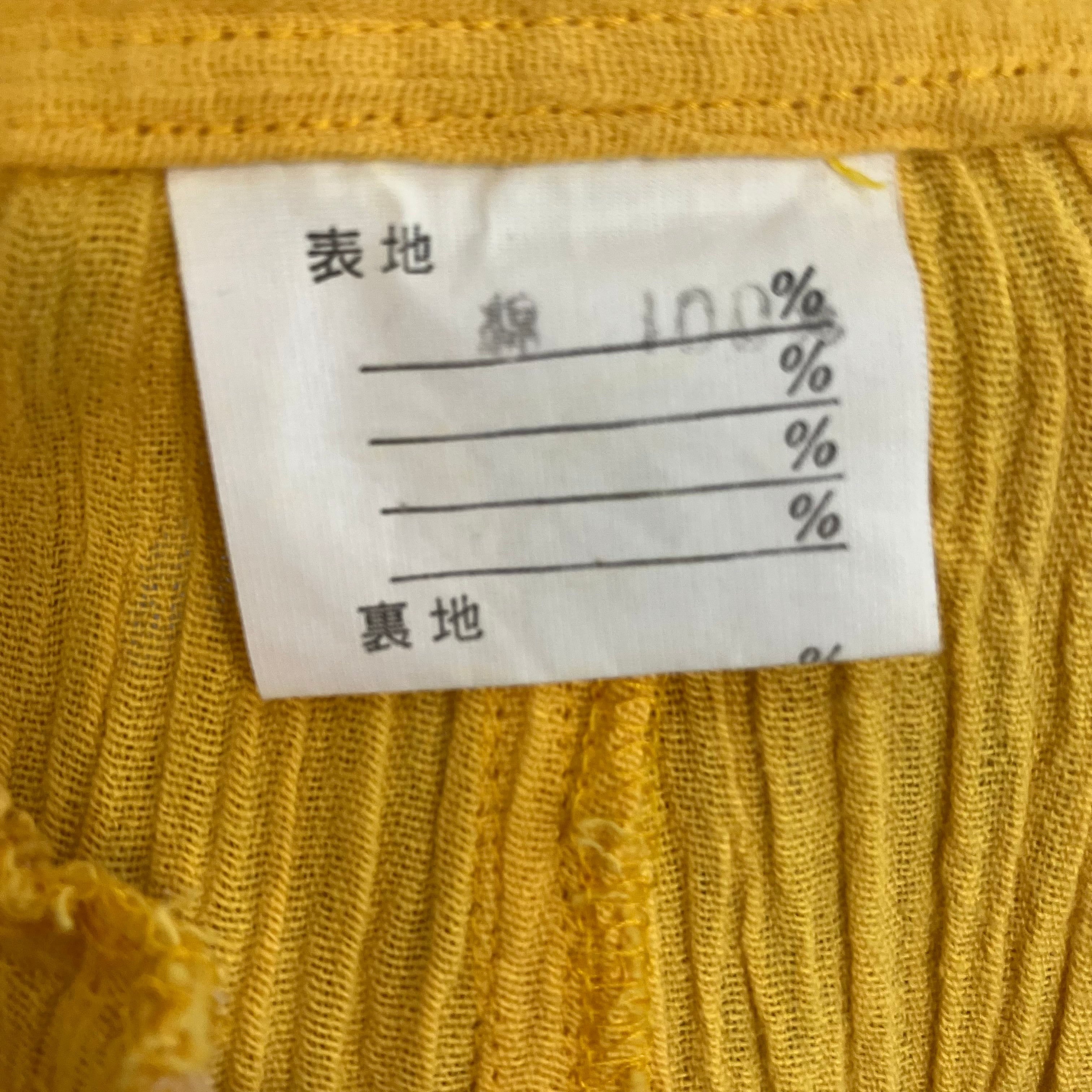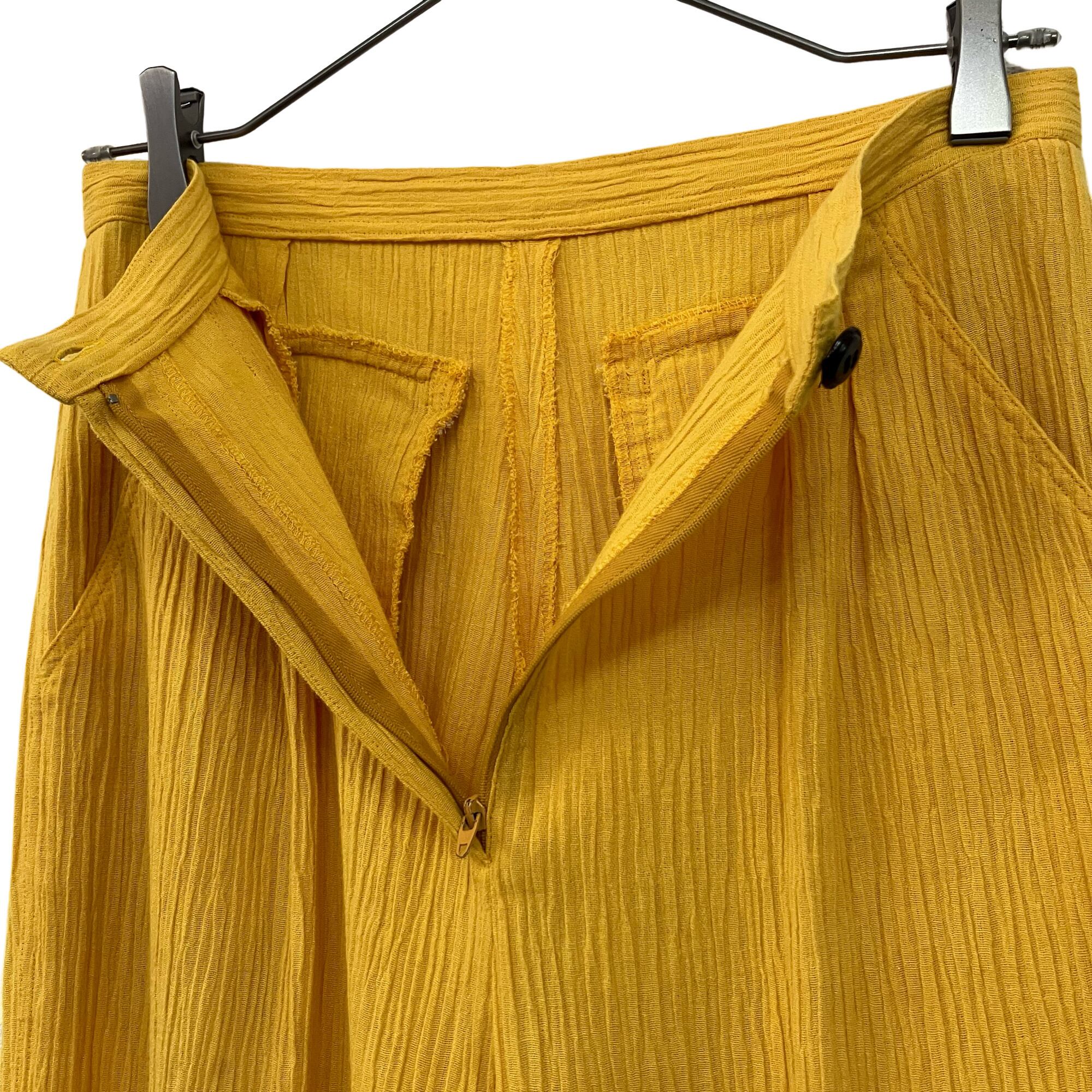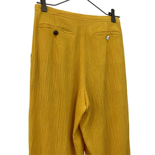SHIMURAのプリーツツータックパンツです。発色の良いイエローが特徴的です。裾がダブル仕立てとなっており、すっきりとしたシルエットでご着用いただけます。