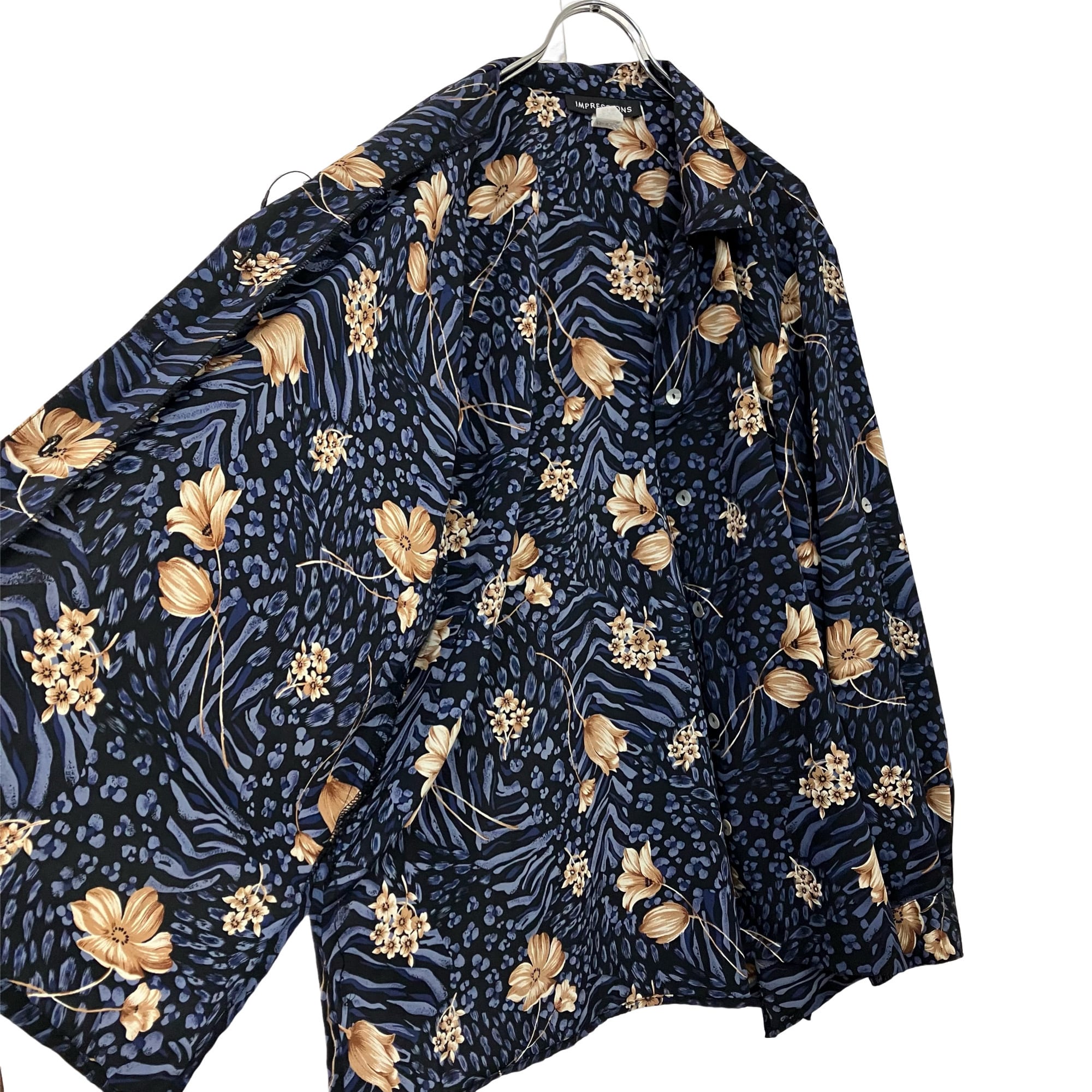 『VINTAGE made in Mexico IMPRESSIONS Flower Leopard Big silhouette Over size shirt』USED 古着 ヴィンテージ メキシコ製 インプレッション フラワー レオパード 総柄 ビッグシルエット オーバーサイズ シャツ