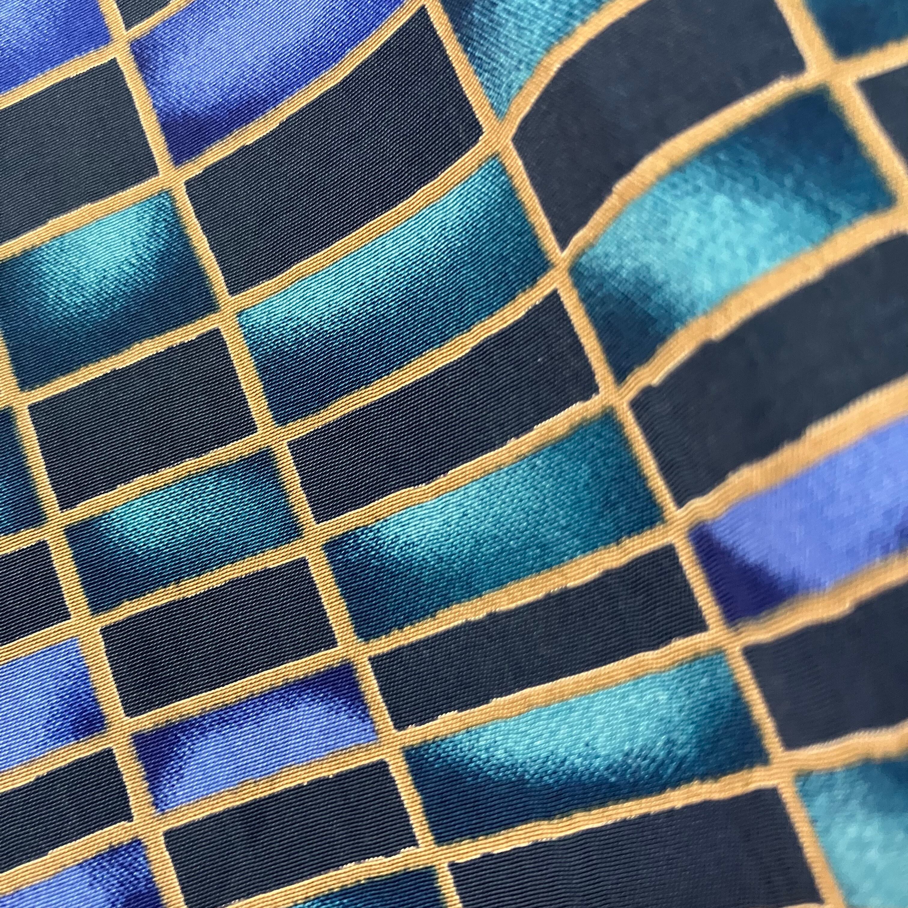 規則的なブロックでデザインされている布地からはモードな雰囲気が感じられ、ネイビーとパープルの寒色との相性が非常に良い一枚です。