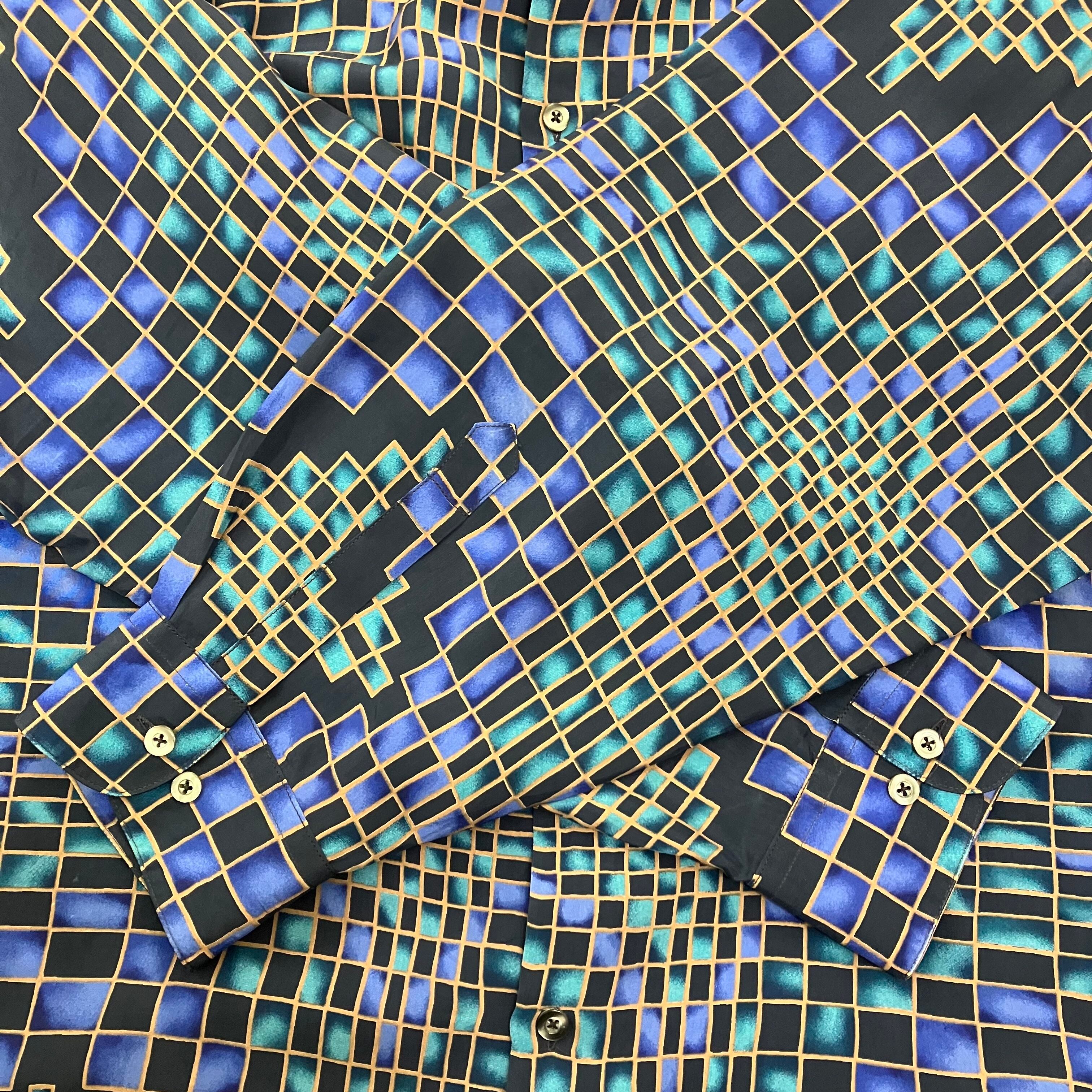 『BERTONE Block Big silhouette Over size shirt』USED 古着 ブロック 総柄 ビッグシルエット オーバーサイズ シャツ