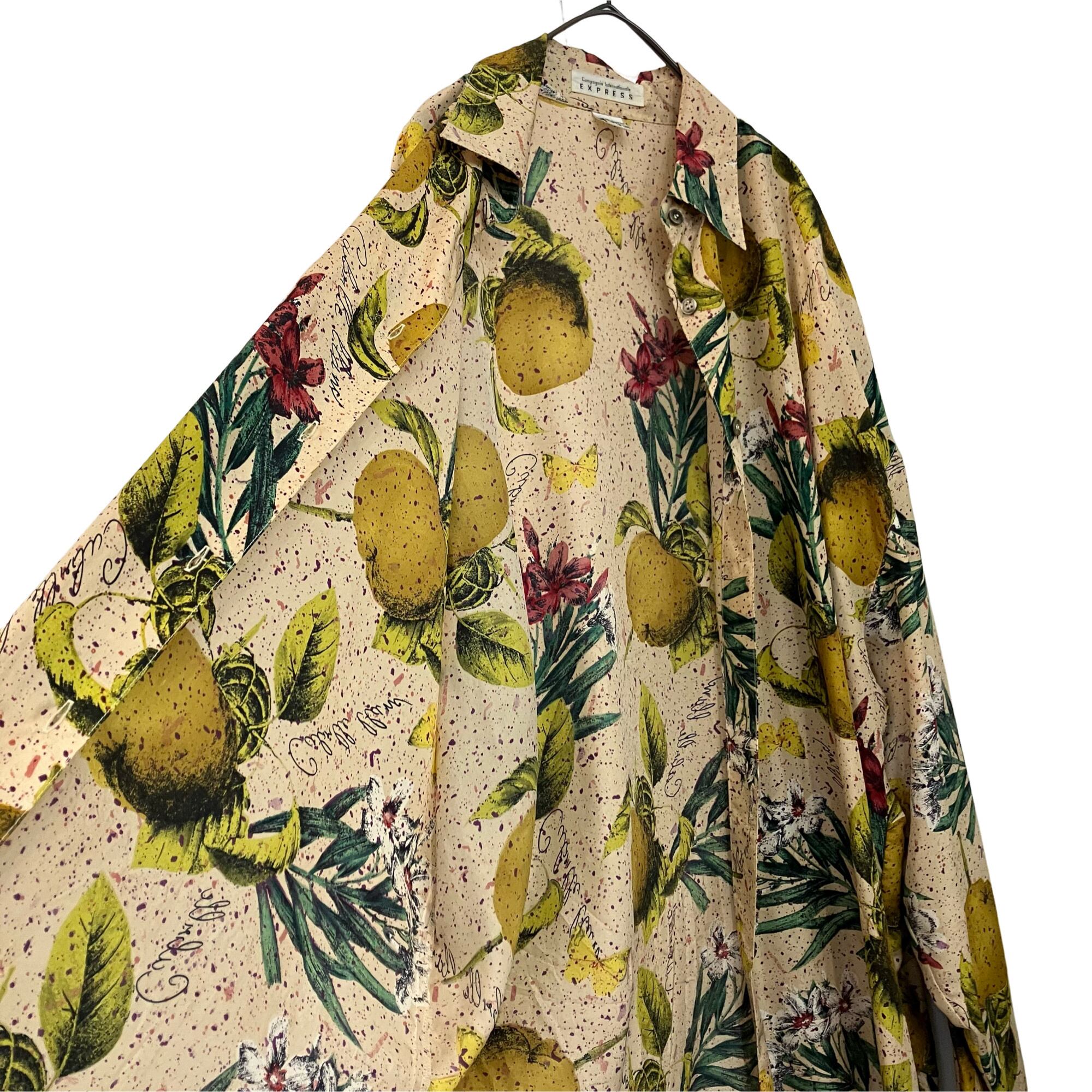 『EXPRESS Flower and Fresh Fruit Big silhouette Over size Silk shirt』USED 古着 フラワー アンド フレッシュ フルーツ 総柄 ビッグシルエット オーバーサイズ シルク シャツ