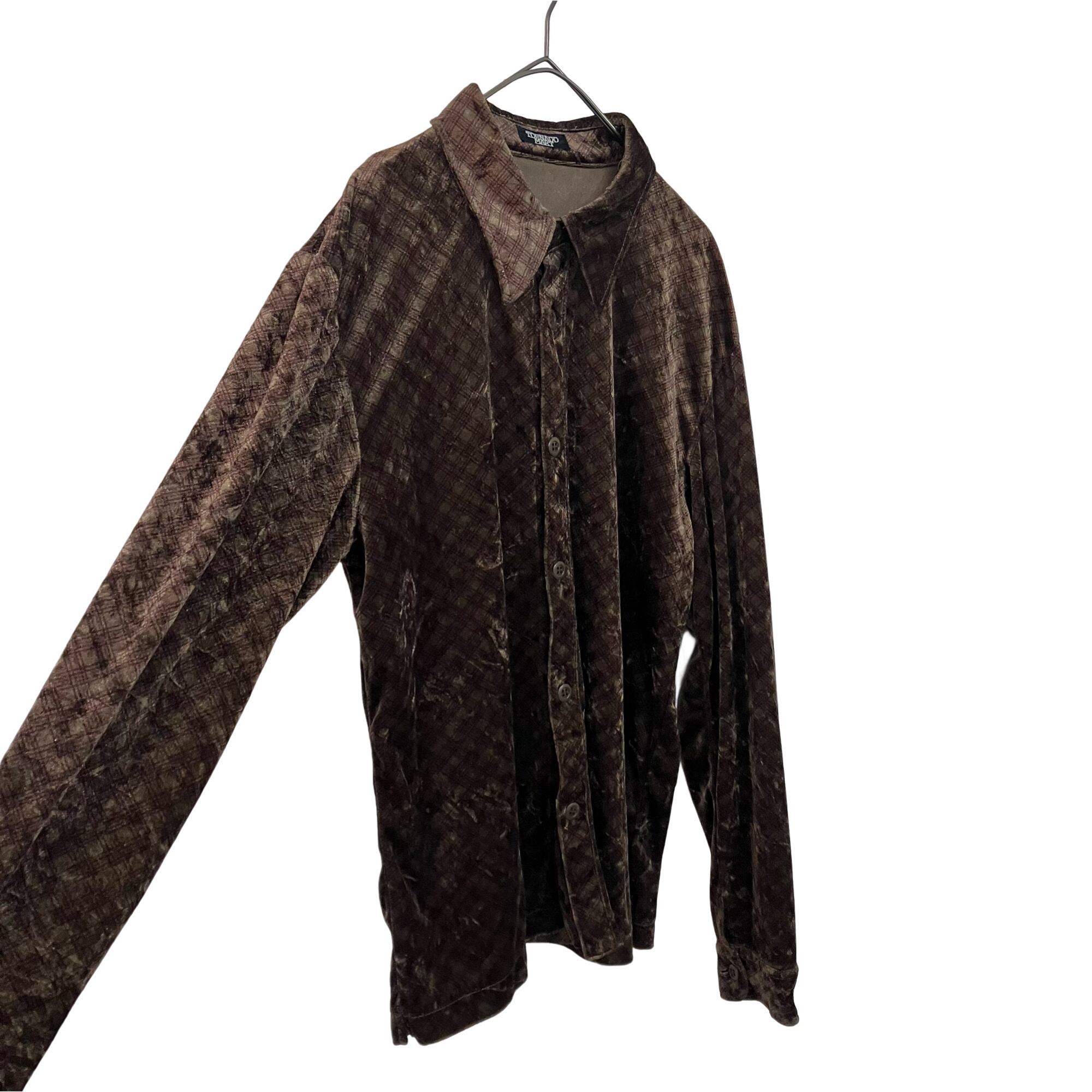 『 VINTAGE TORNADO MART Velour Velvet check Slit Shirt』USED 古着 ヴィンテージ トルネードマート ベロア ベルベット チェック スリット シャツ