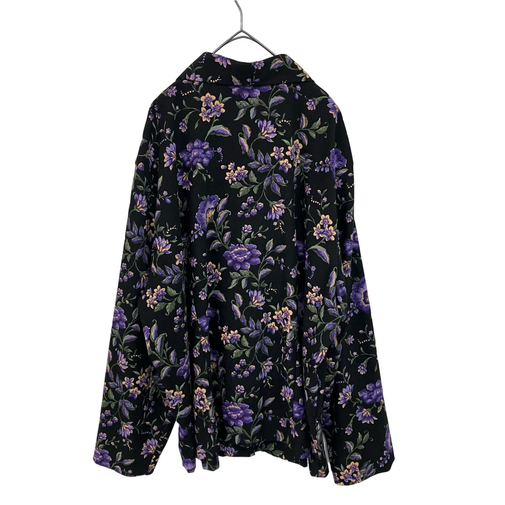 『 VINTAGE dressbarn Purple Flower Pattern Big Silhouette Over Size Shirt Jacket』USED 古着 ヴィンテージ ドレスバーン フラワー 総柄 ビッグシルエット オーバーサイズ シャツ ジャケット
