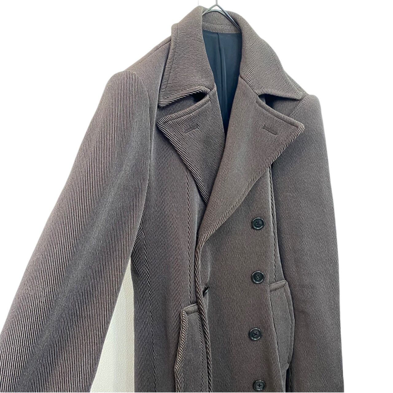 高級感のある見た目で若い方から大人の方まで着こなせるコートです。大きい襟やポケットが特徴的です。開けても閉めても楽しめるアイテムとなっております。状態も良く、末永くご着用いただけると思います。