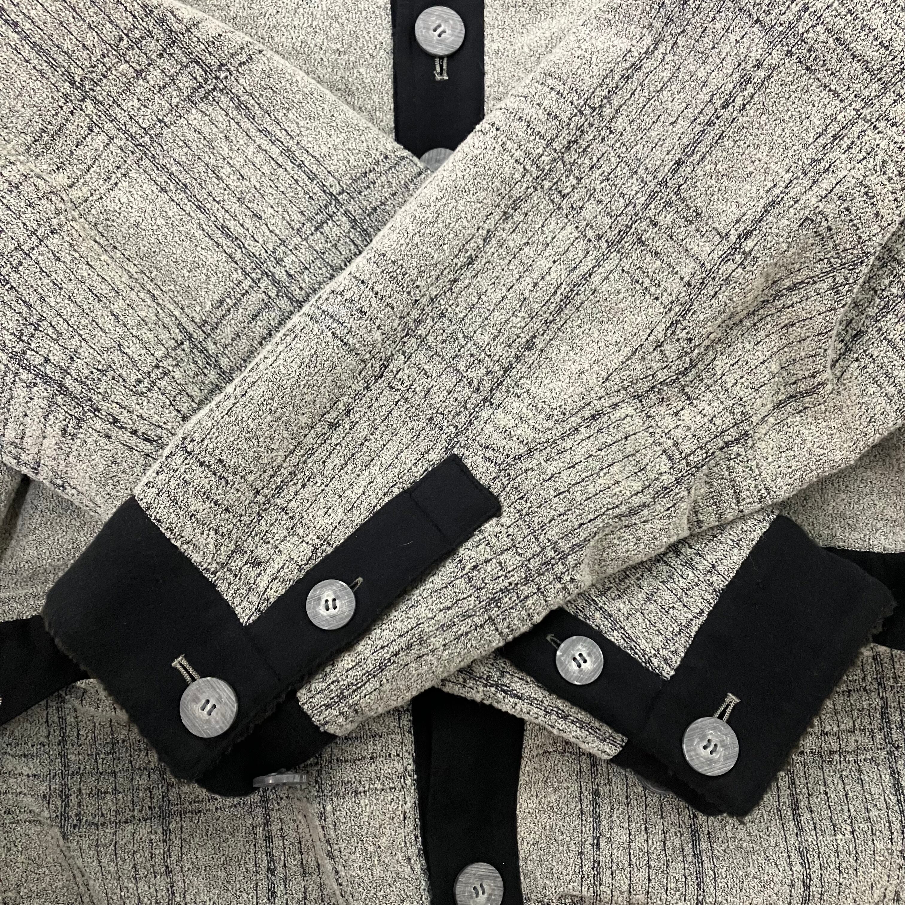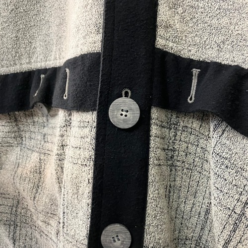 Santafeのパイピングラインの入ったブルゾンです。パイピングされたデザインにボタンやボタンホールが多く付いている個性的な1着となっています。存在感を出したい方は是非。メンズにもレディースにもユニセックスでご着用いただけると思います。