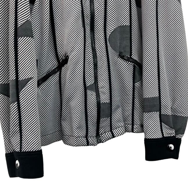 伸縮性があるので、タイトに着て頂いたり、アウターの中に着込んだりと汎用性高く様々な場面でご着用いただけます。右袖中央付近とジップの内側に色汚れがござい ますが、ご着用には問題ございません。古着特有の使用感や雰囲気にご理解いただきますよう、よろしくお願いいたします。