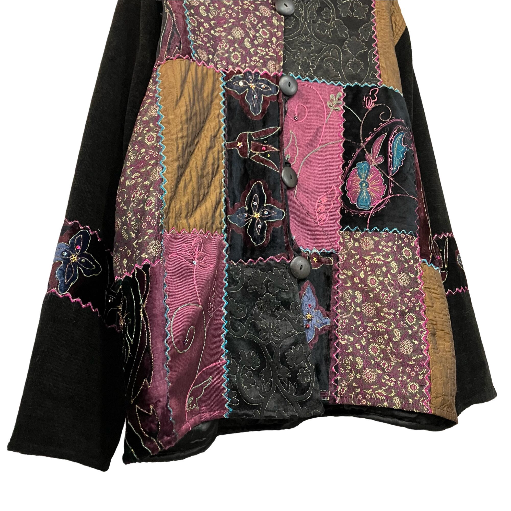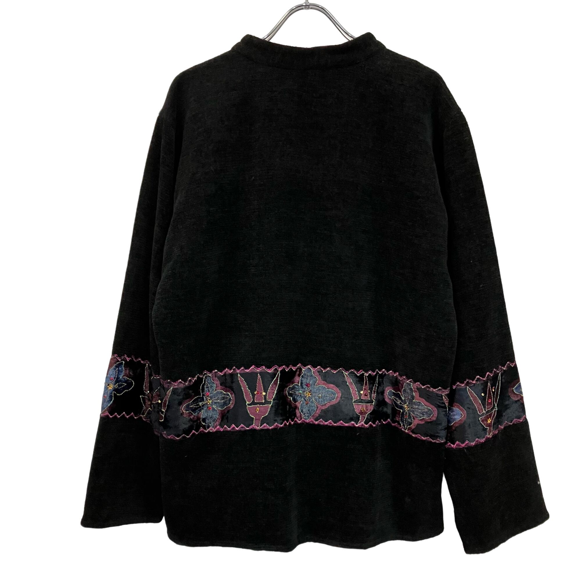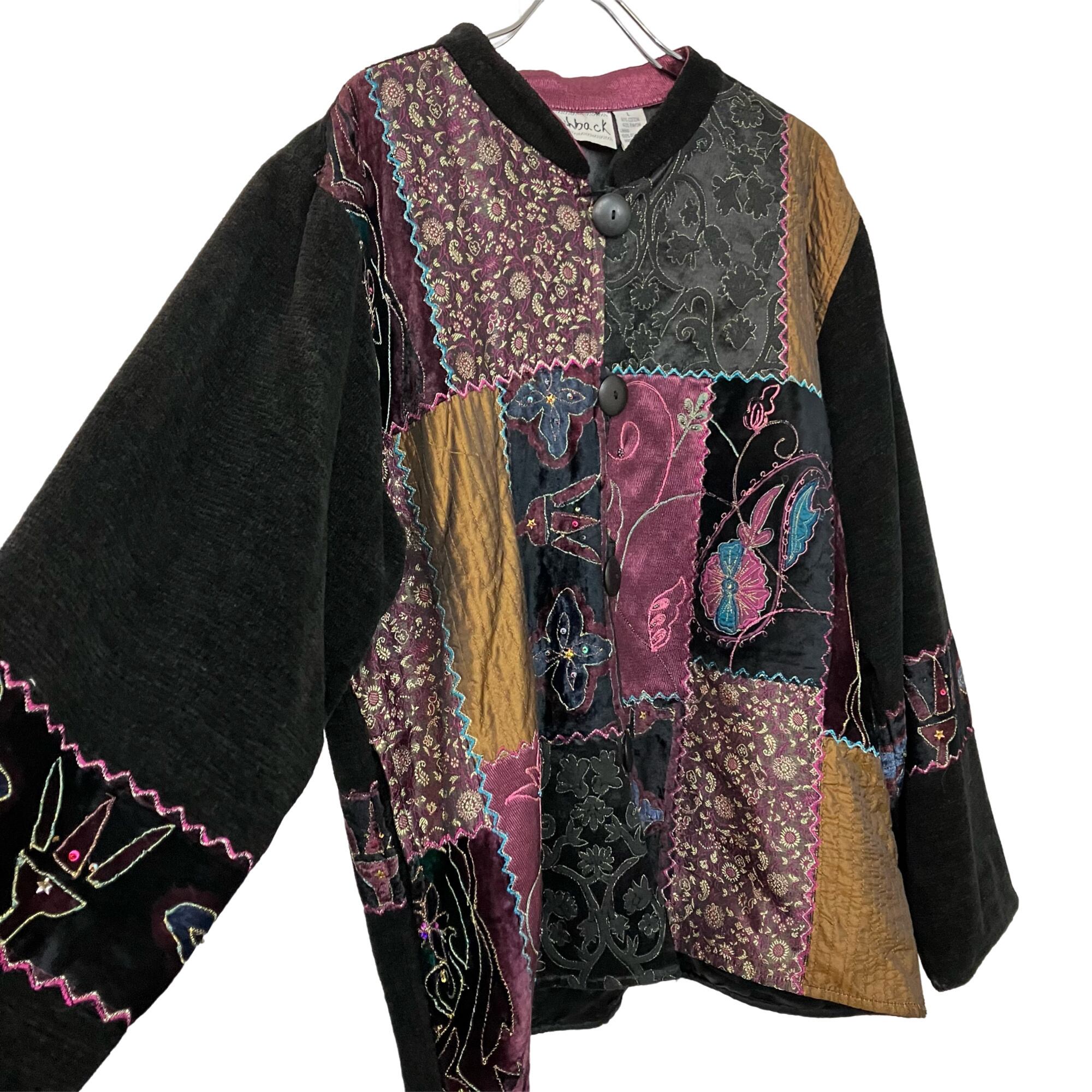 『VINTAGE Flash back Big silhouette Over size Embroidery patchwork Flower Leaf stitch sequin colorful multicolor Button Gobelins jacket』USED 古着 ヴィンテージ ビッグ シルエット オーバー サイズ パッチワーク 花柄 リーフ ステッチ 刺繍 スパンコール ラメ カラフル マルチカラー 総柄 ボタン ゴブラン ジャケット