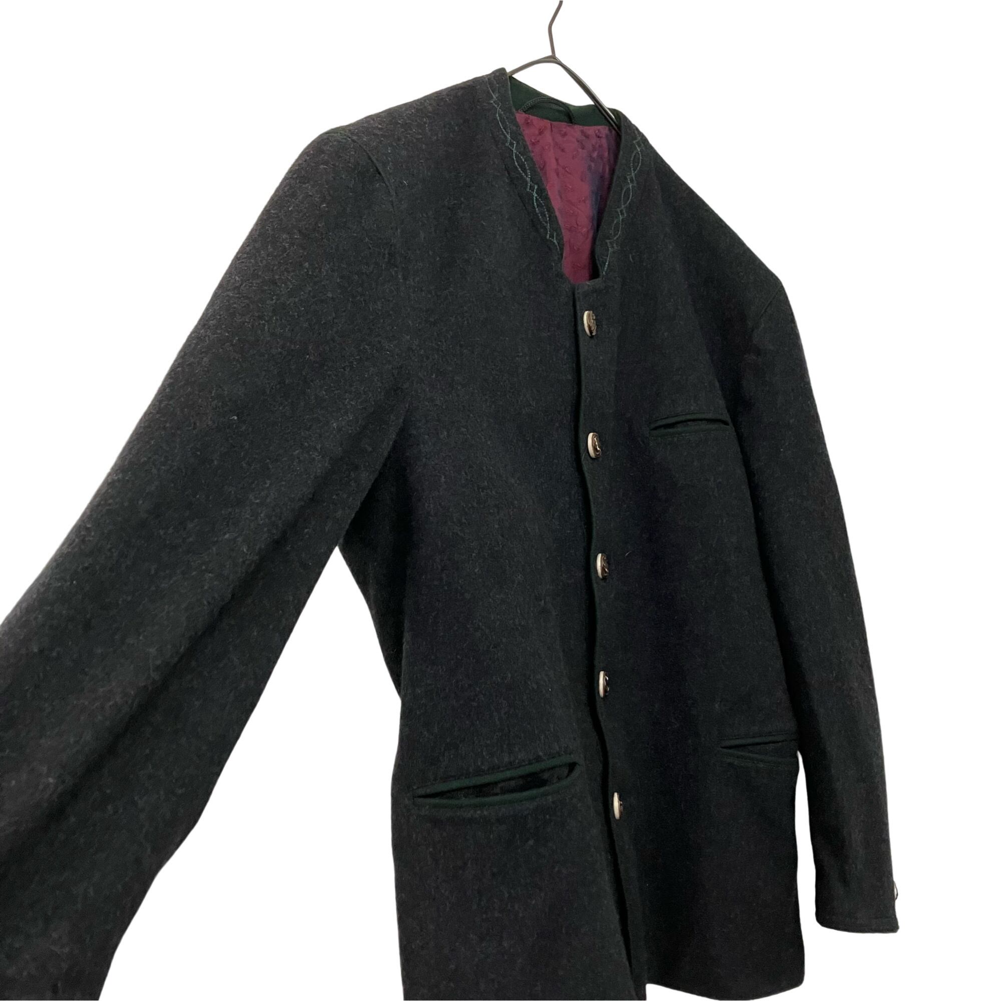 『VINTAGE no collar embroidery button cashmere wool paisley back belt Tyrol Tyrolean jacket』USED 古着 ヴィンテージ ノーカラー 刺繍 ボタン カシミヤ ウール バック ベルト チロル チロリアン ジャケット