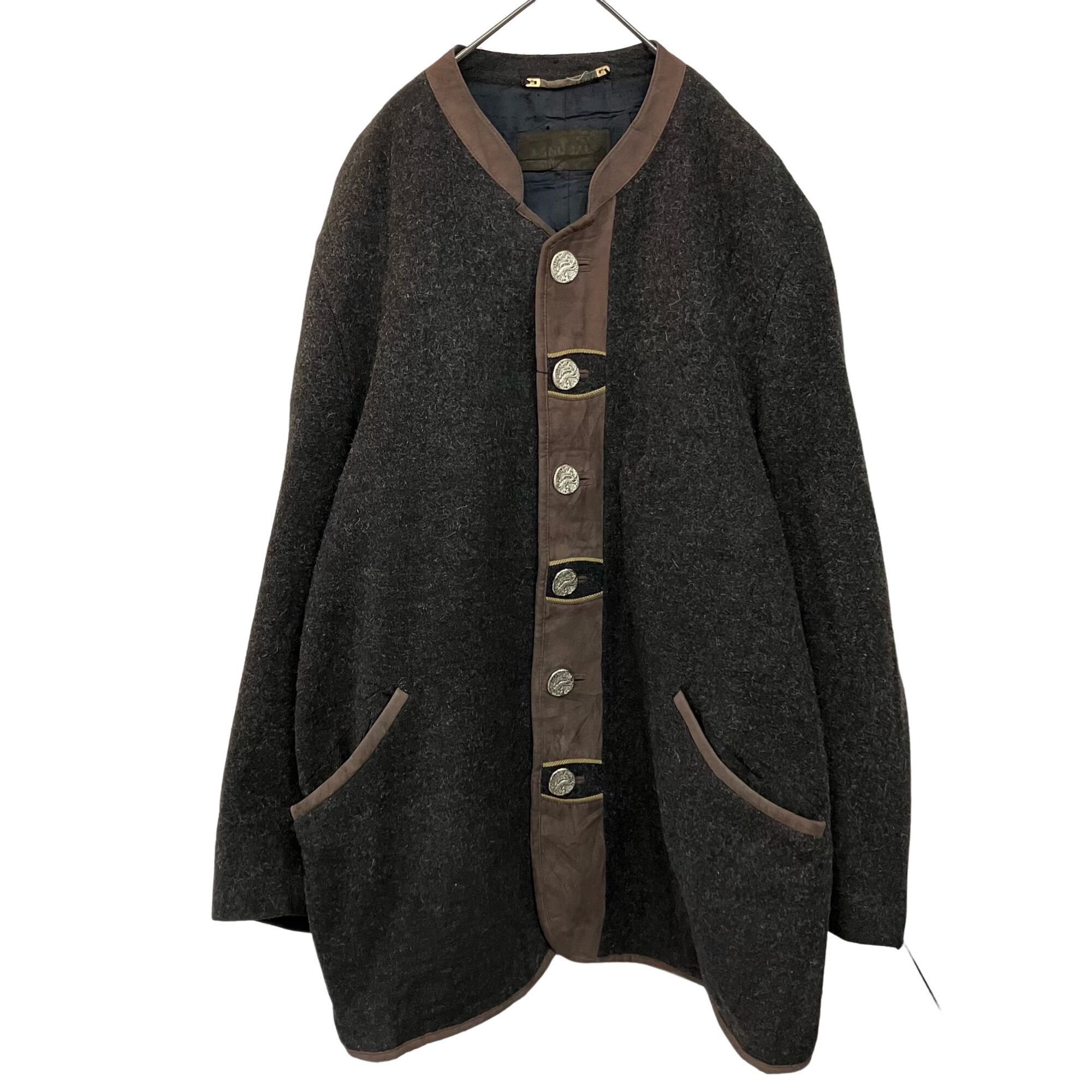 『VINTAGE no collar genuine leather suede wool medal button big silhouette over size Tyrol Tyrolean jacket』USED 古着 ヴィンテージ ノー カラー 本革 スエード レザー ウール メダル ボタン ビッグ シルエット オーバー サイズ チロル チロリアン ジャケット