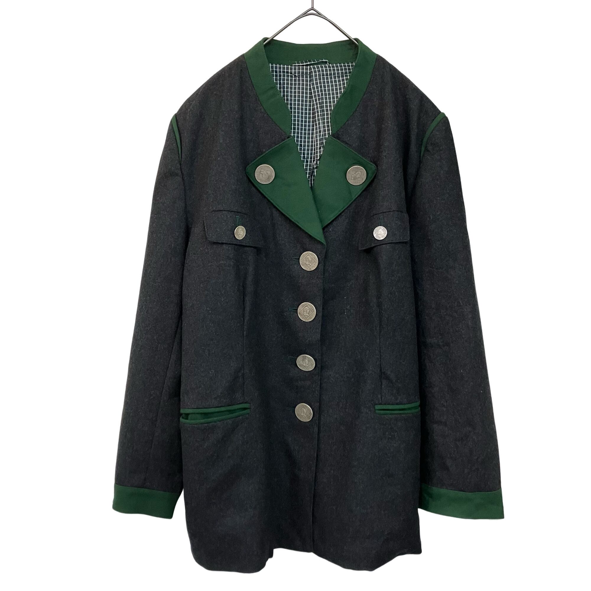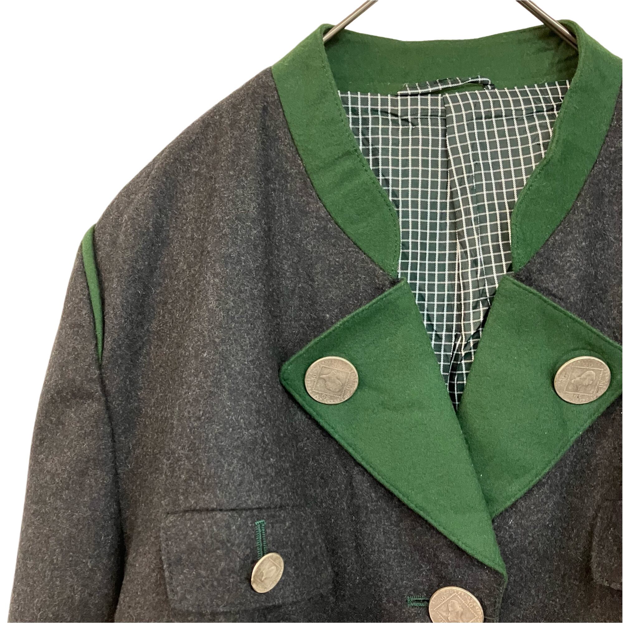『VINTAGE wool medal button embroidery back belt big silhouette over size Tyrol Tyrolean jacket』USED 古着 ヴィンテージ ウール メダル ボタン 刺繍 バック ベルト ビッグ シルエット オーバー サイズ チロル チロリアン ジャケット