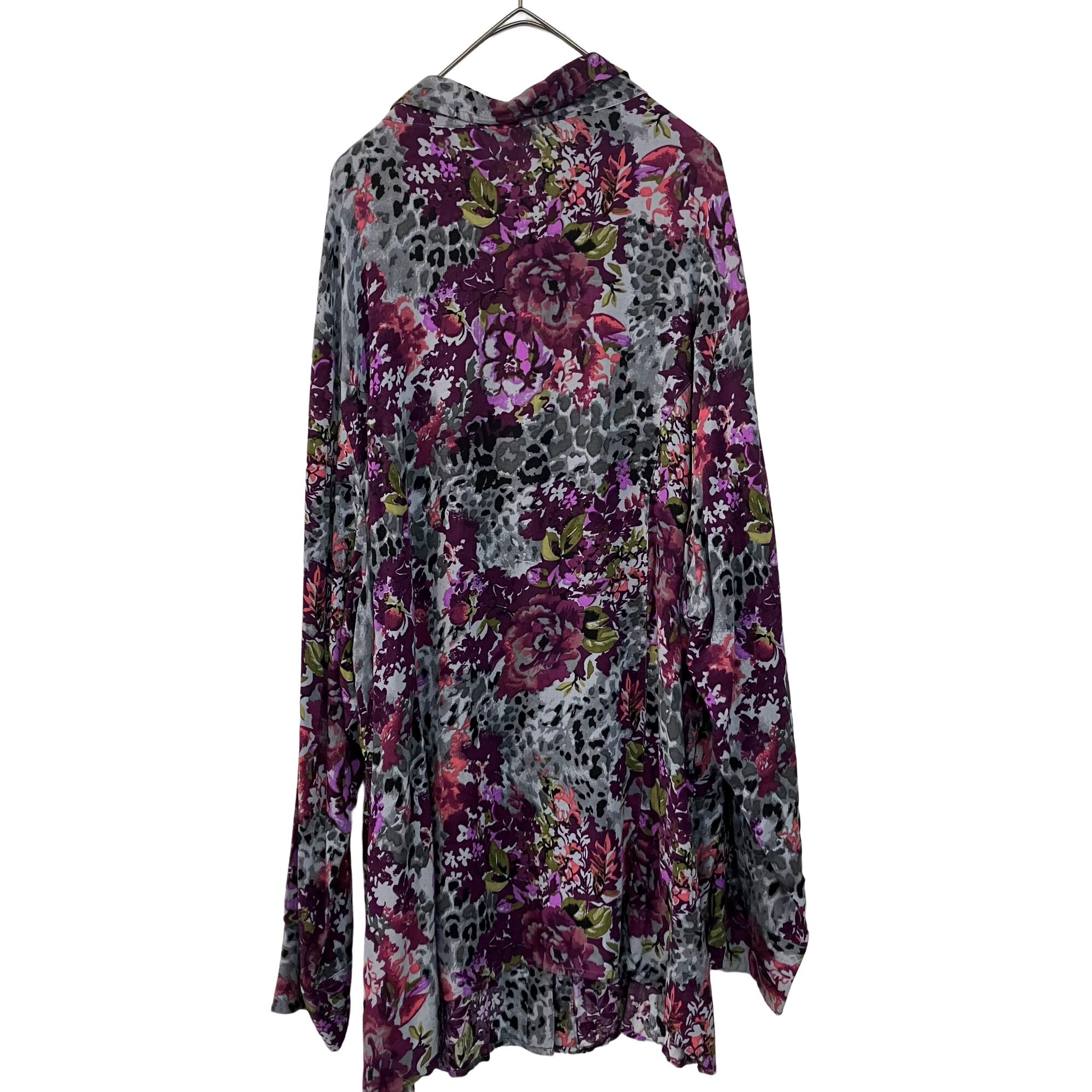 『VINTAGE Ryon whole pattern leaf flower leopard Big silhouette Over size shirt 』USED 古着 フラワー レーヨン レオパード 豹柄 総柄 リーフ ビッグ シルエット オーバー サイズ シャツ