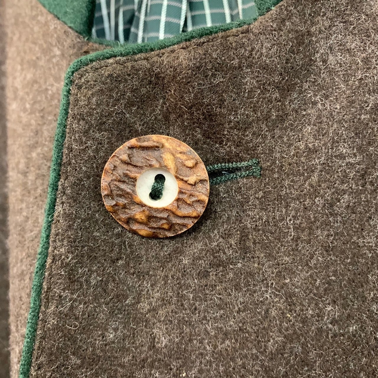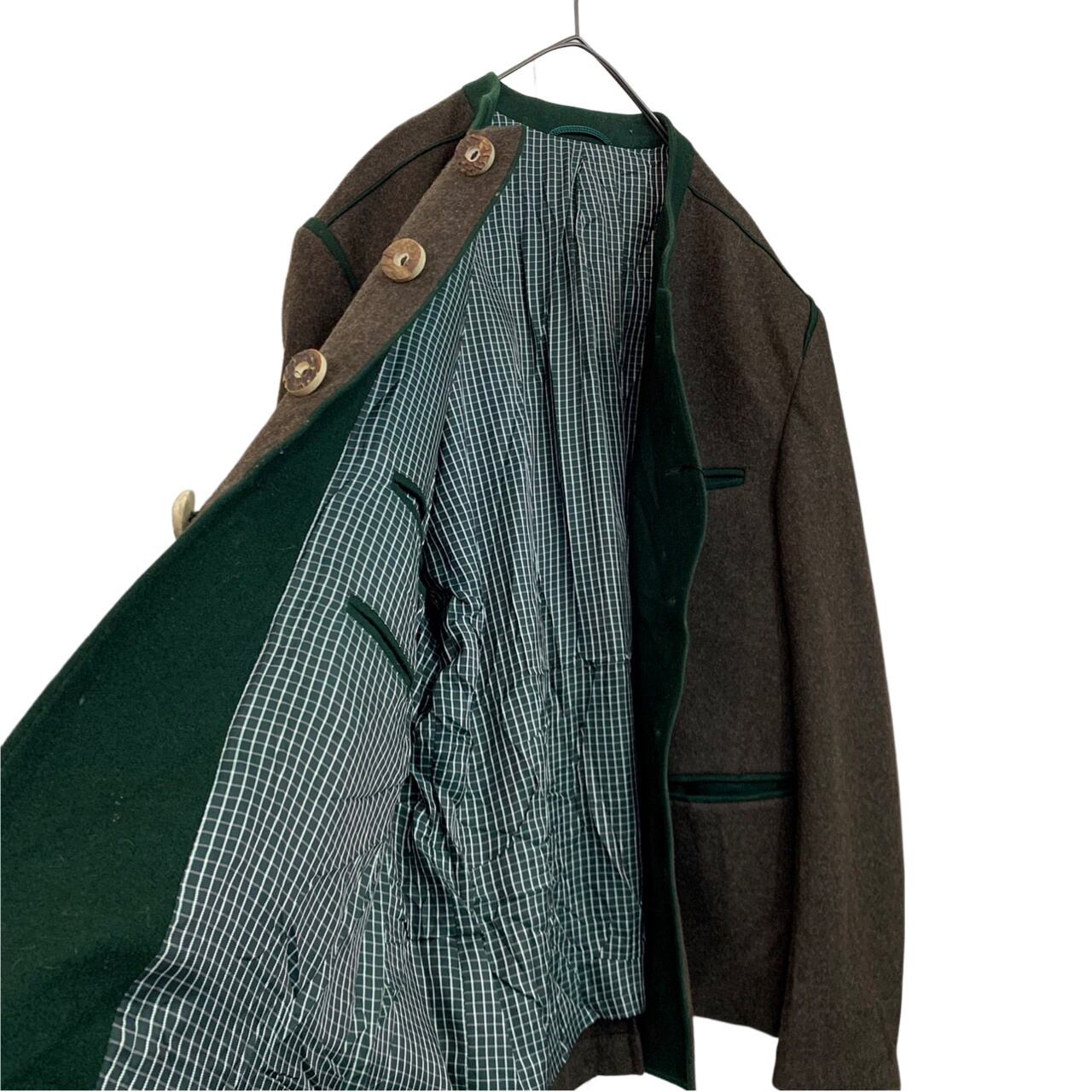 『VINTAGE no collar wool button check piping Tyrol Tyrolean jacket』USED 古着 ヴィンテージ ノーカラー ウール ボタン チェック 格子 パイピング チロル チロリアン ジャケット