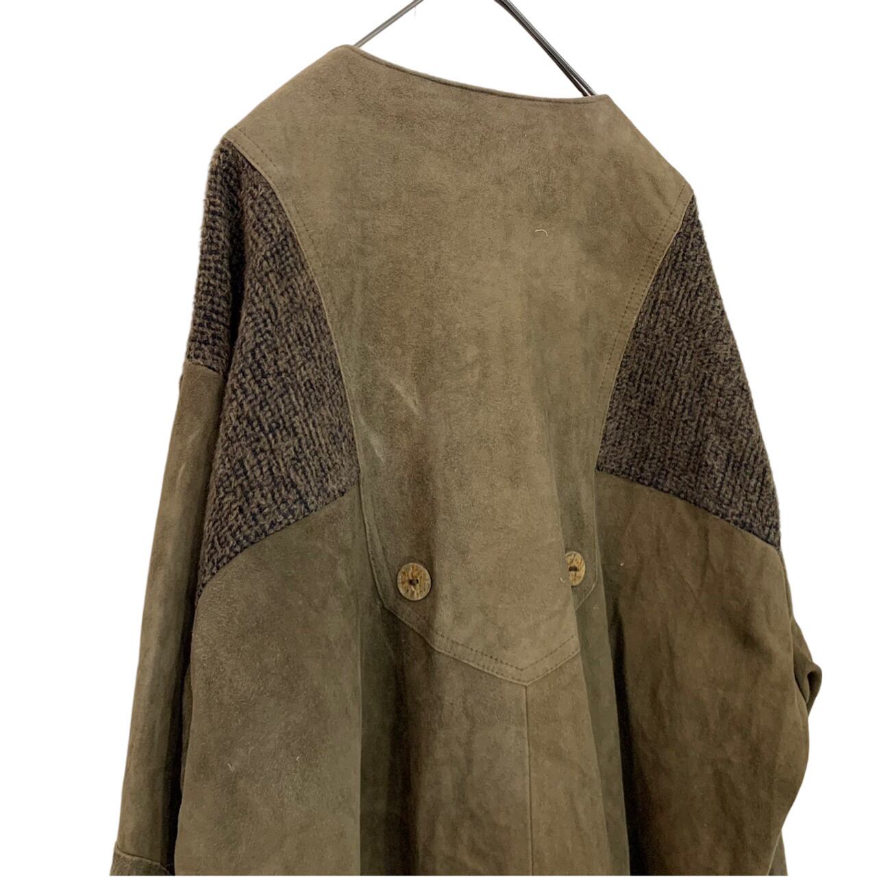 『VINTAGE genuine leather suede wood button big silhouette over size Tyrol Tyrolean jacket』USED 古着 ヴィンテージ 本革 スエード レザー ウッド ボタン 切替し ビッグ シルエット オーバー サイズ チロル チロリアン ジャケット