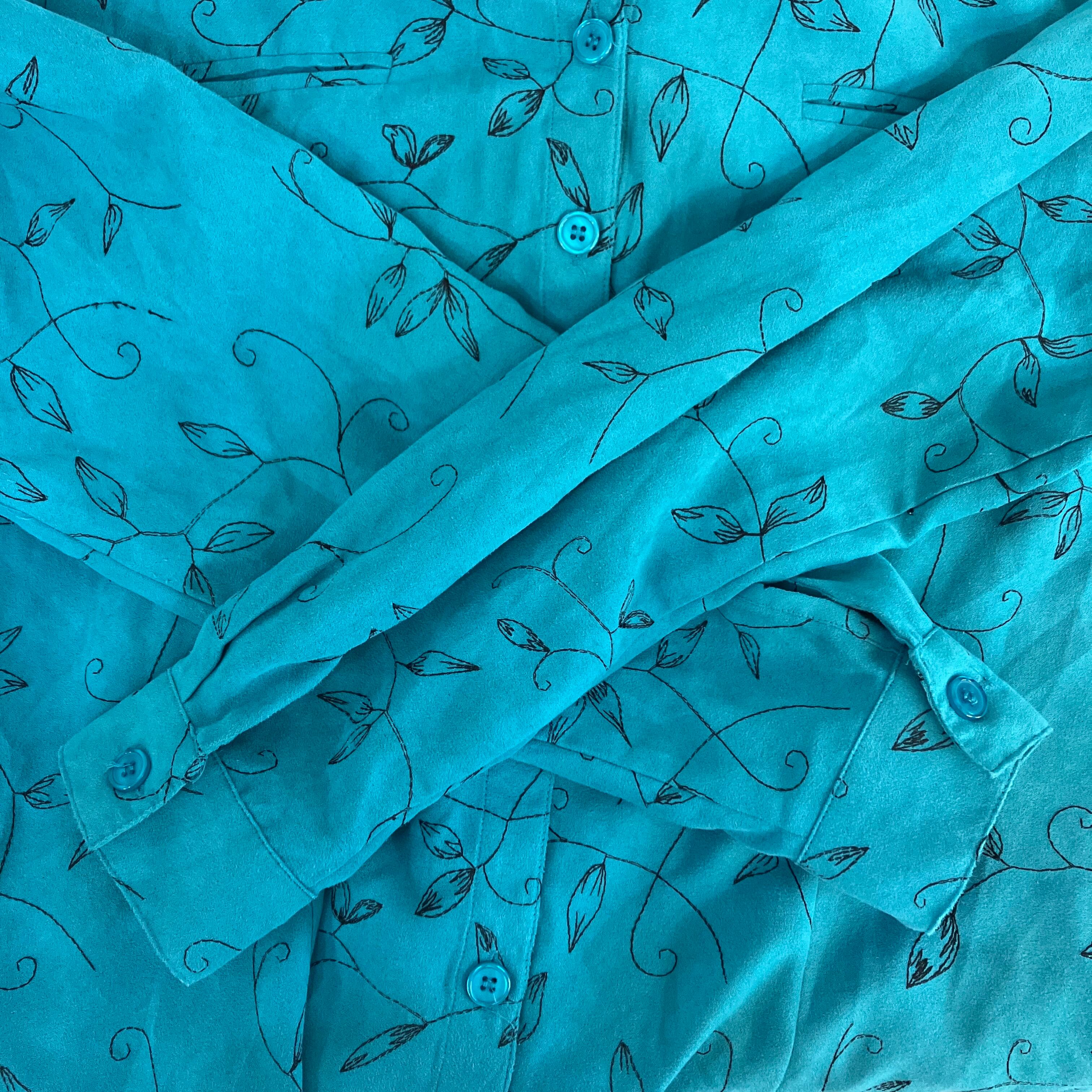 『VINTAGE SAGHARBOR leaf fake suede whole embroidery whole pattern Over size shirt 』USED 古着 ヴィンテージ リーフ フェイクスエード 刺繍 総柄 ビッグ シルエット オーバー サイズ シャツ