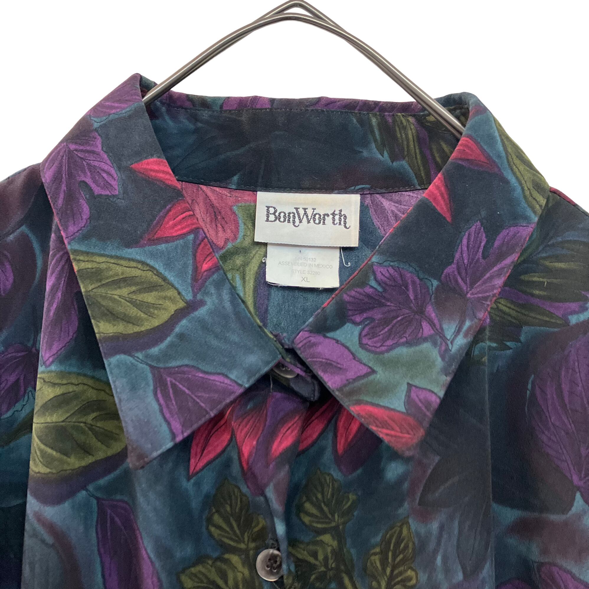 『VINTAGE Made in Mexico Bon worth leaf whole pattern Over size shirt 』USED 古着 ヴィンテージ メキシコ製 リーフ 総柄 ビッグ シルエット オーバー サイズ シャツ