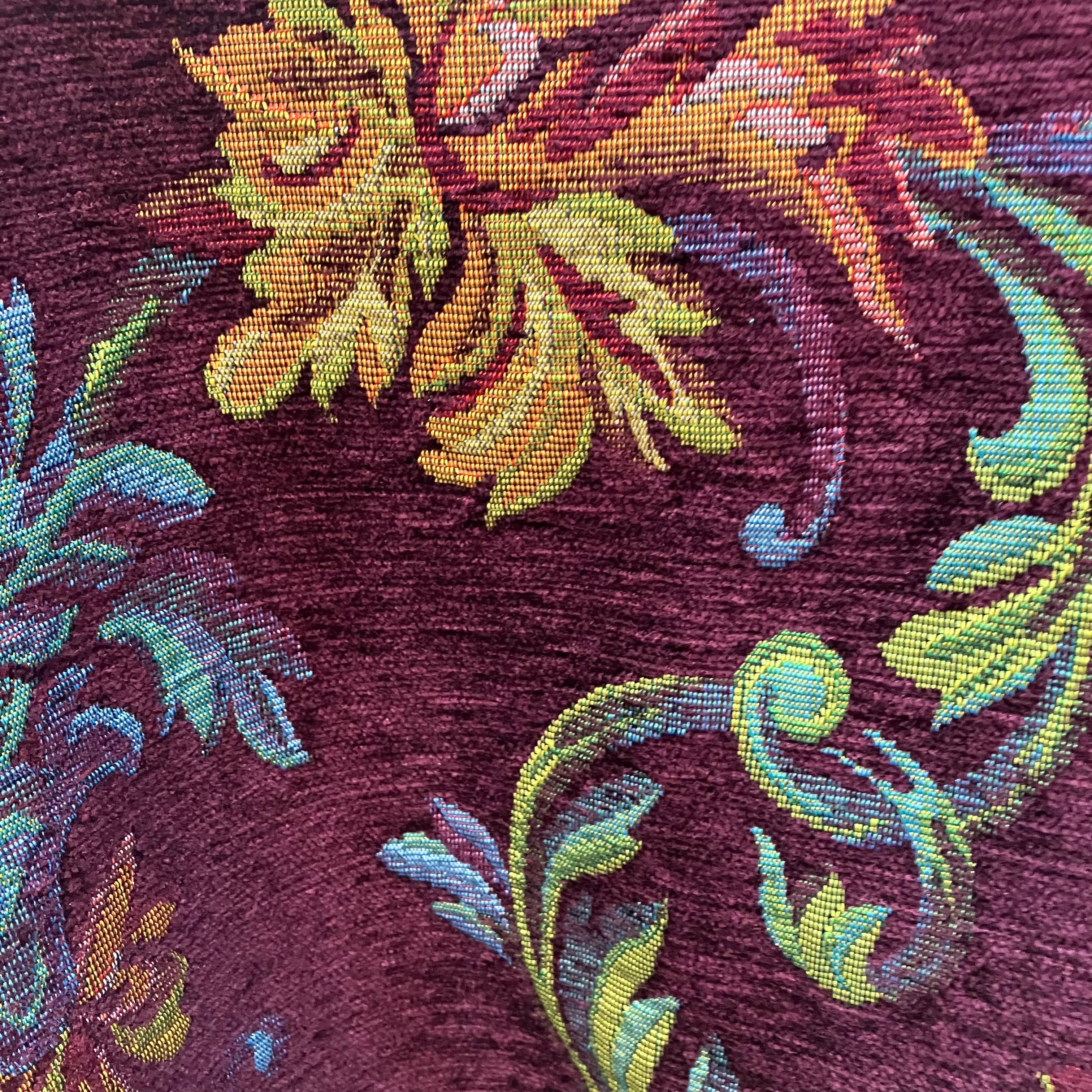 ゴブラン織りにはプリントでは表現できない良さがあり、非常に丁寧な作りとなっております。パープルやブラウンの色味にデザインされた総柄からは高級感を感じられます。チャイナの雰囲気も併せ持つアイテムです。レトロ古着がお好きな方にオススメです。メンズでもレディースでもユニセックスにご着用いただけると思います。