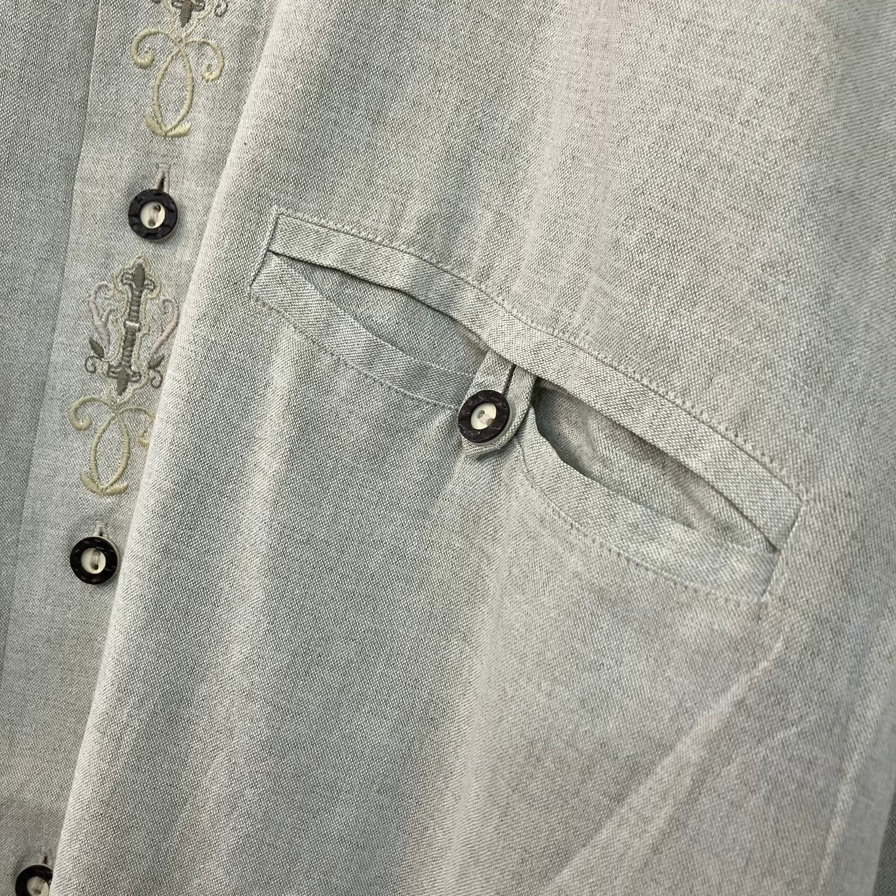 『VINTAGE embroidery button Cotton big silhouette over size Tyrol Tyrolean nocollar shirt』USED 古着 ヴィンテージ 刺繍 ボタン ビッグ シルエット オーバー サイズ チロル チロリアン ノーカラーシャツ