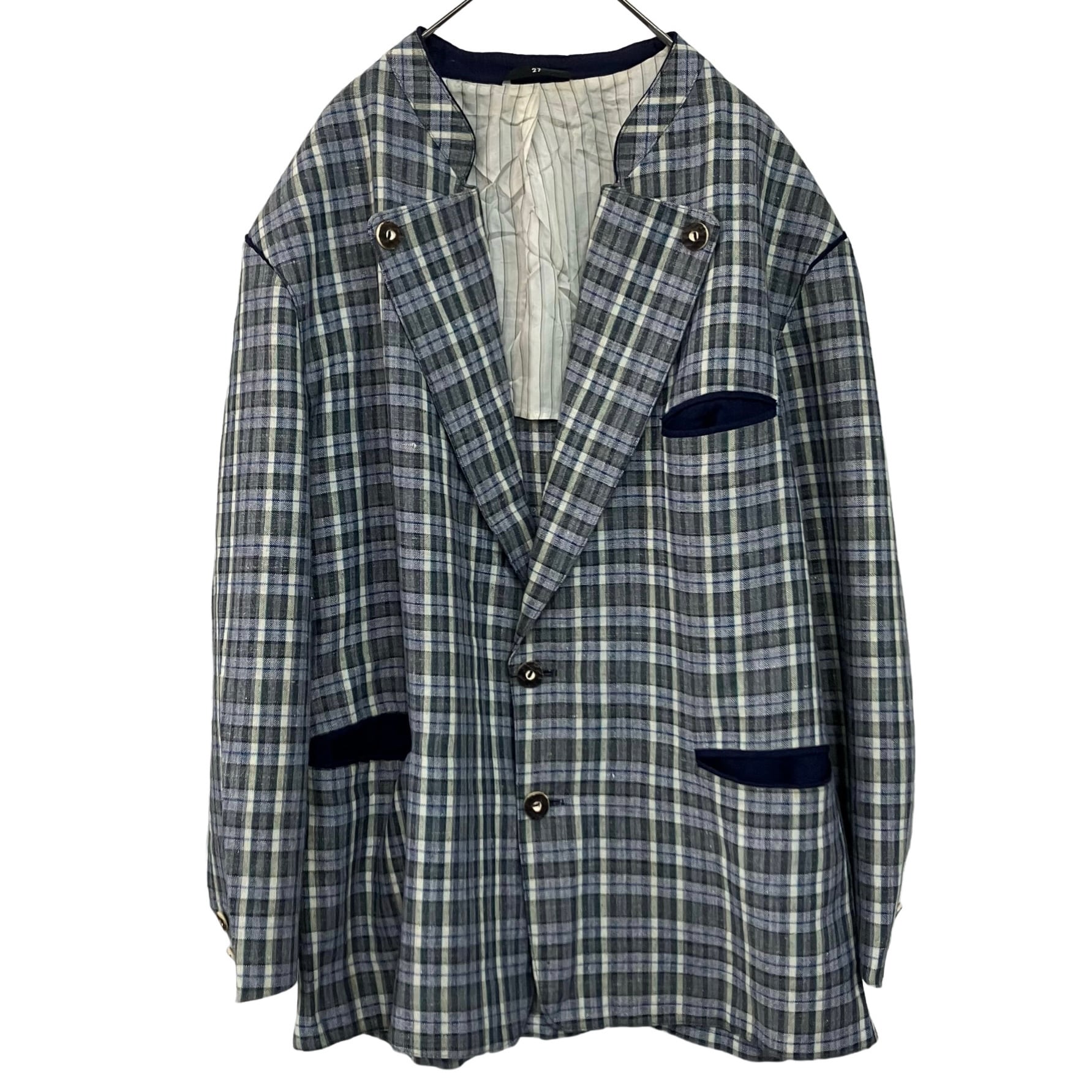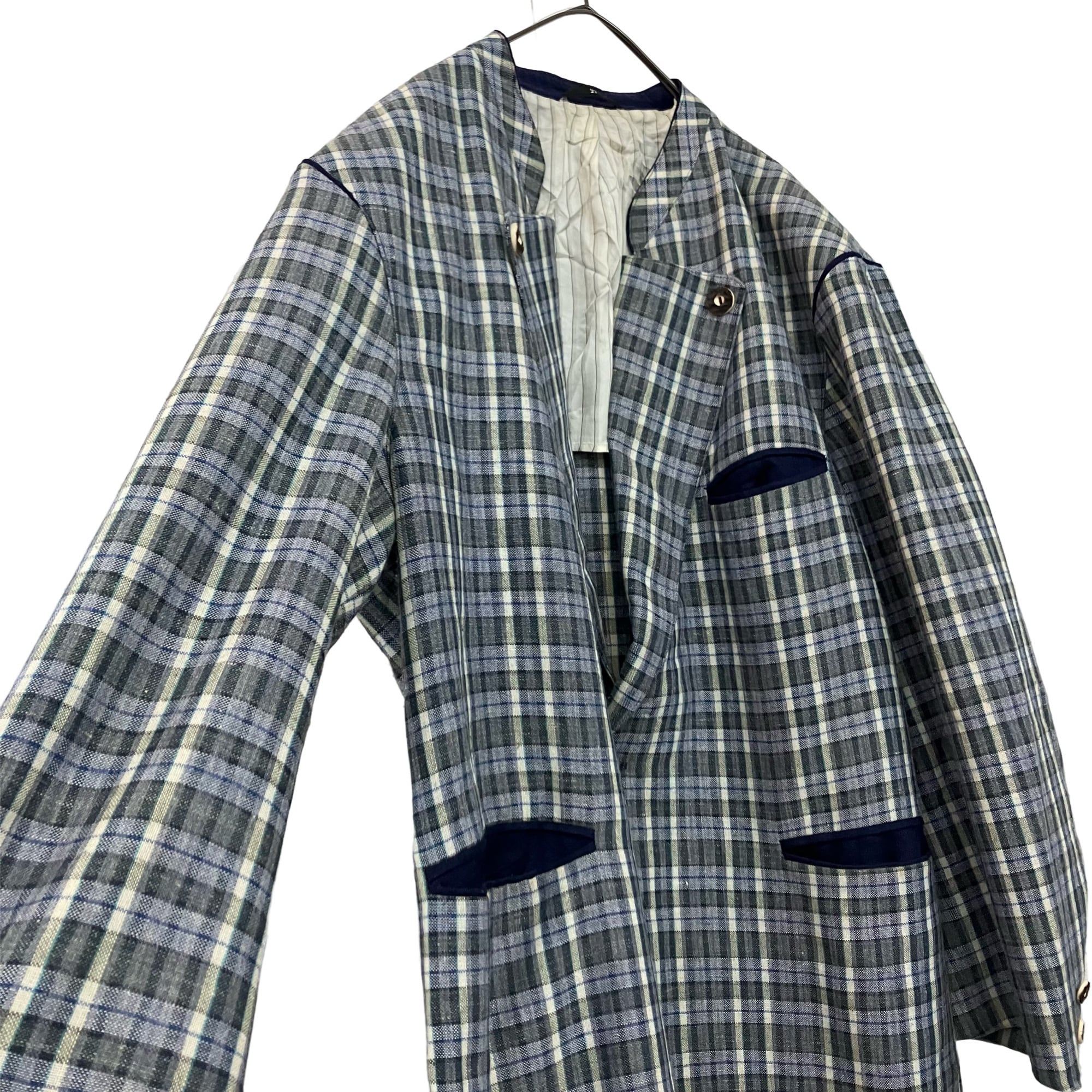 『VINTAGE linen wool plaid back belt big silhouette over size Tyrol Tyrolean jacket』USED 古着 ヴィンテージ リネン ウール チェック バック ベルト ビッグ シルエット オーバー サイズ チロル チロリアン ジャケット