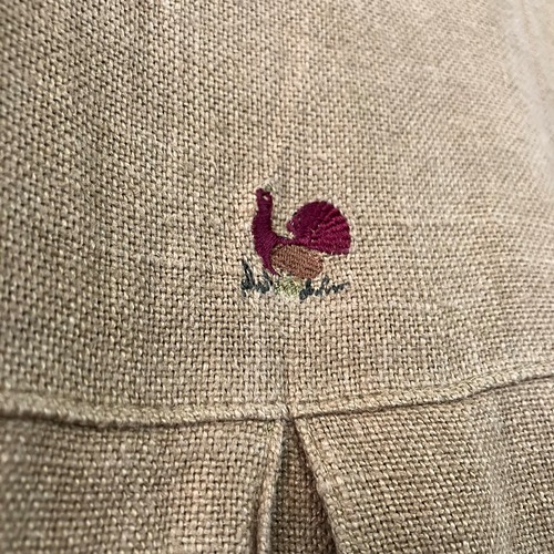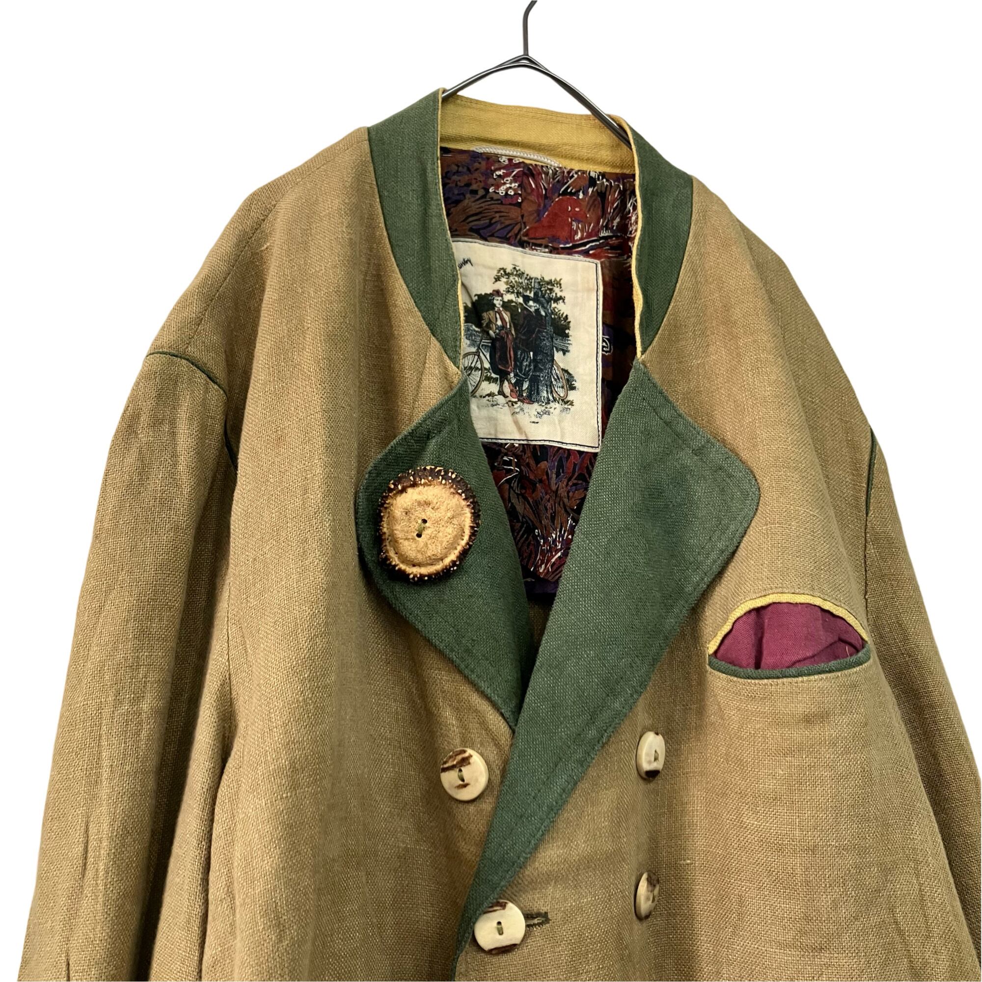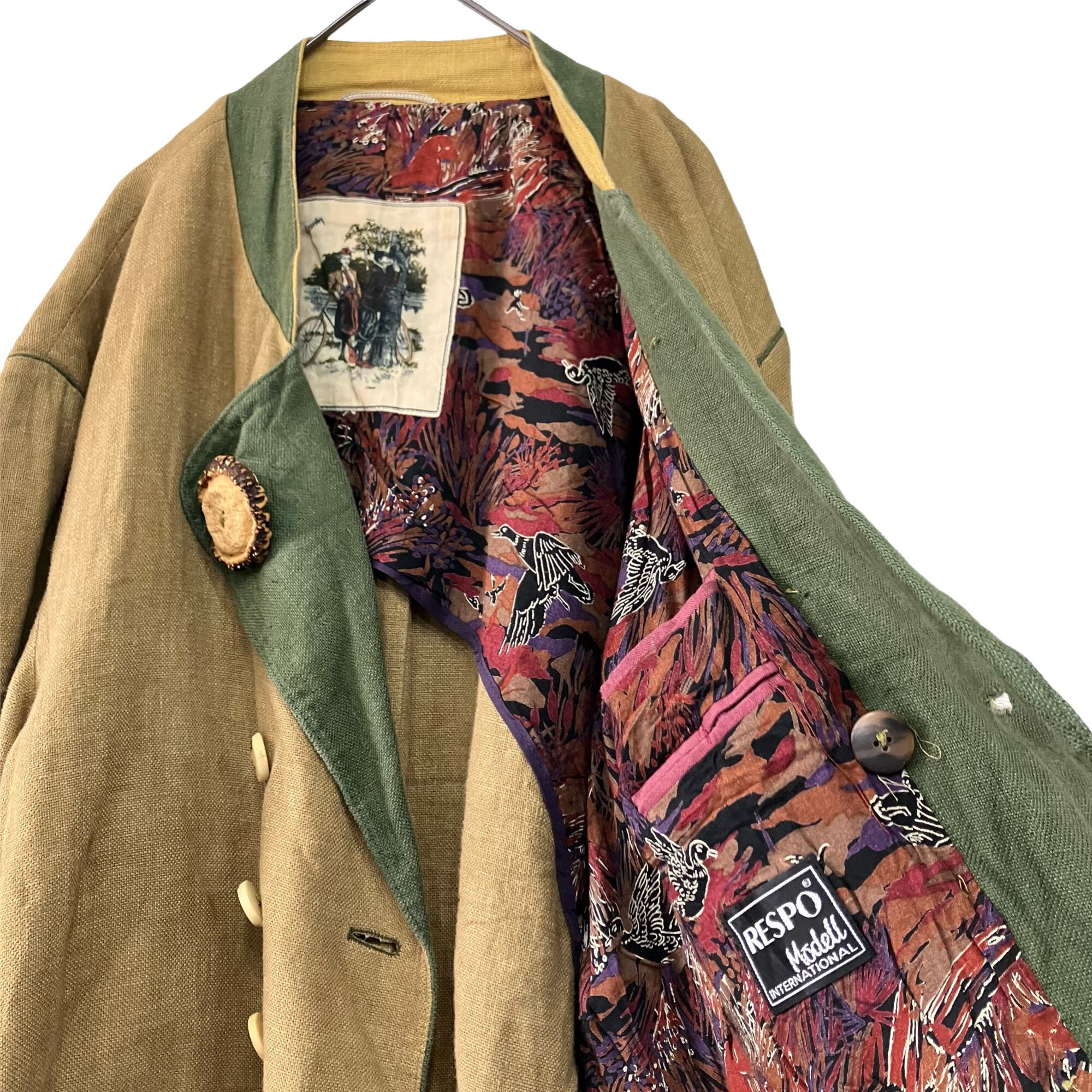 『VINTAGE made in Austria linen bird embroiderY stitch wood design button back belt big silhouette over size double Tyrol Tyrolean jacket』USED 古着 ヴィンテージ オーストリア製 リネン バード 刺繍 ステッチ ウッド デザイン ボタン バック ベルト ビッグ シルエット オーバー サイズ ダブル チロル チロリアン ジャケット