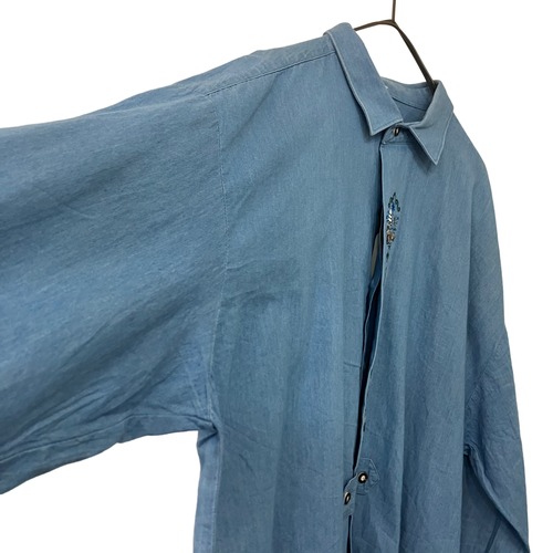 『VINTAGE JUPITER Eembroidery flower leaf animal people button Cotton big silhouette over size Tyrol Tyrolean shirt』USED 古着 ヴィンテージ 刺繍 フラワー リーフ アニマル ピープル ボタン コットン ビッグ シルエット オーバー サイズ チロル チロリアン シャツ