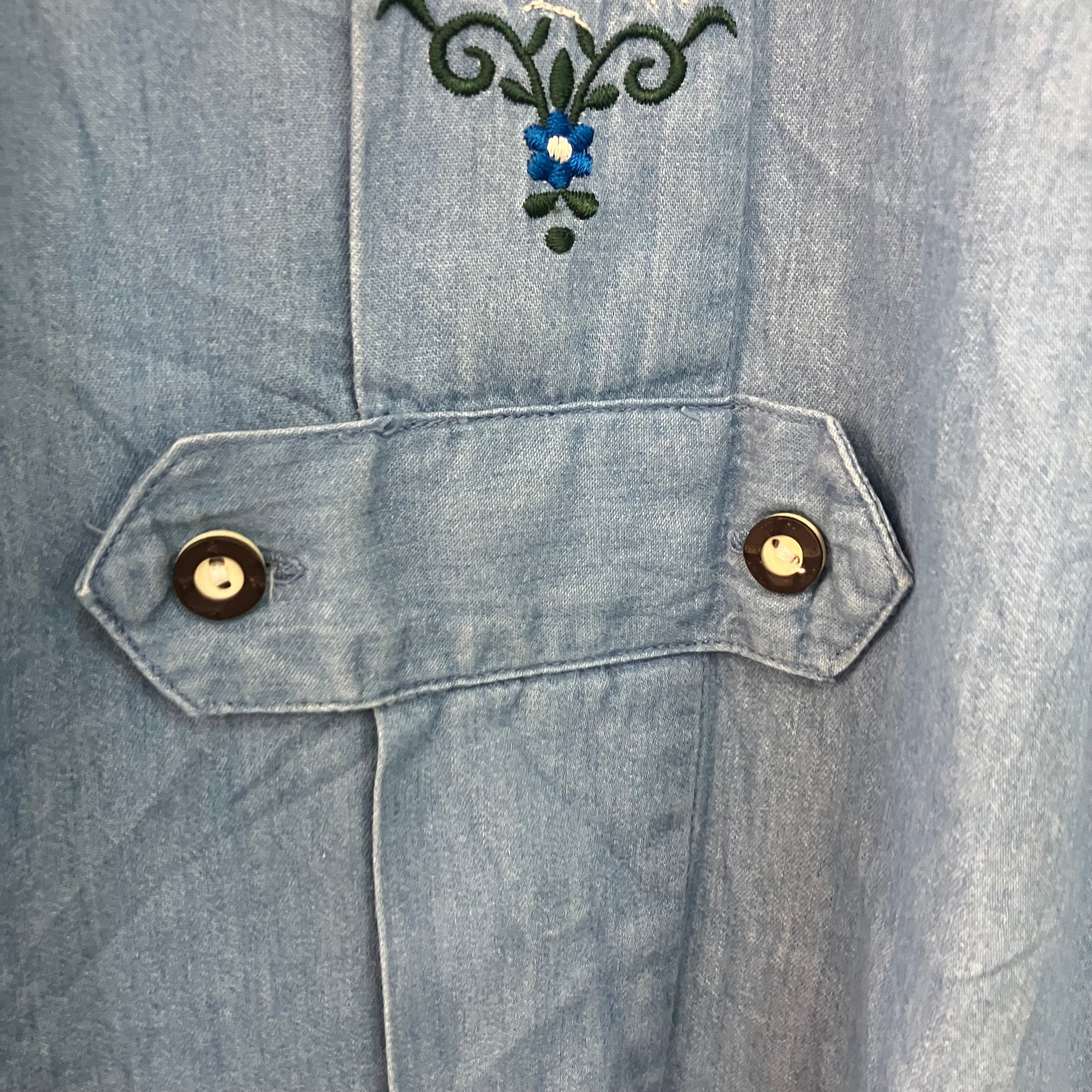 VINTAGE JUPITER Eembroidery flower leaf animal people button Cotton big silhouette over size Tyrol Tyrolean shirtです。