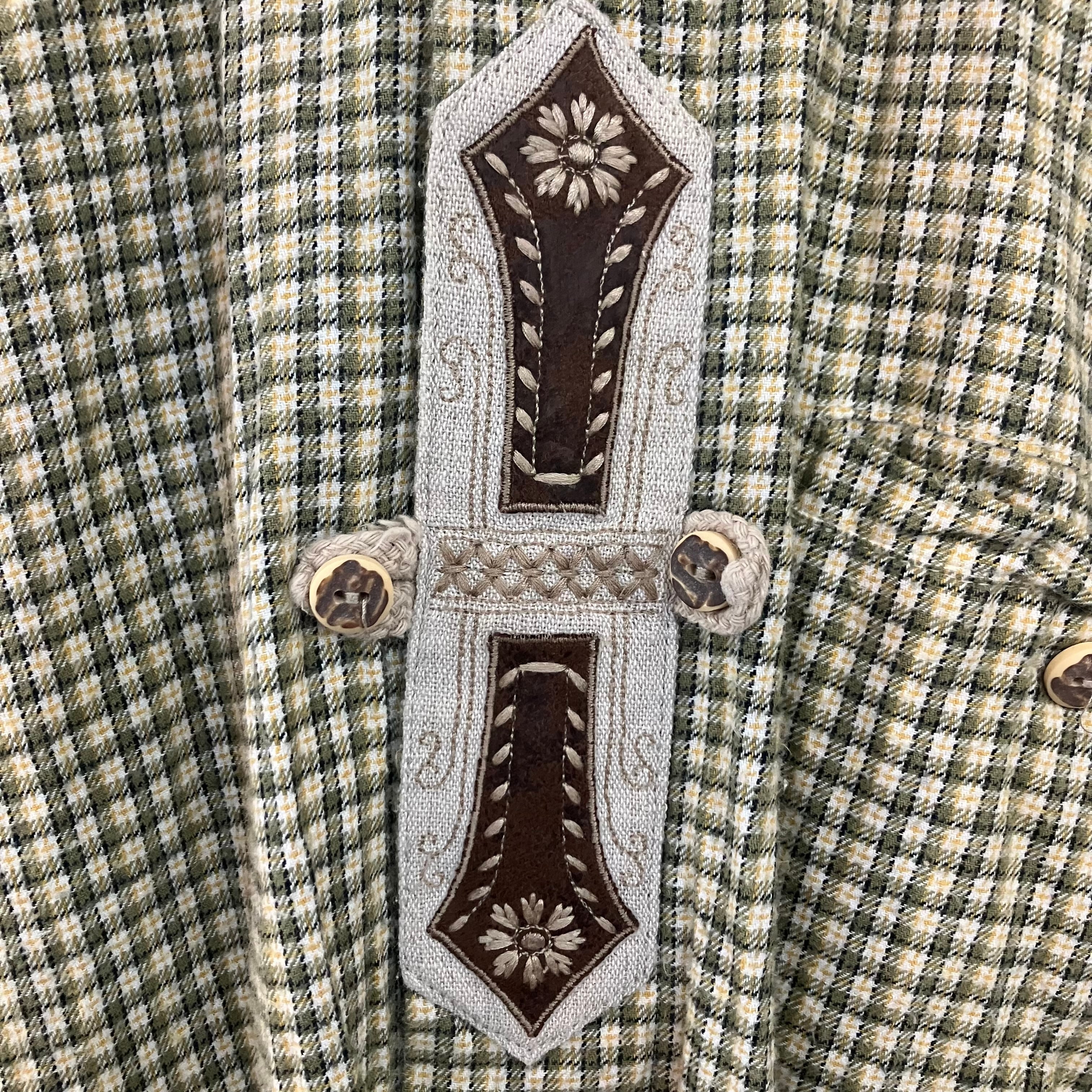 VINTAGE LANDHAUS flower leaf button Cotton big silhouette over size checked wappen Tyrol Tyrolean shirtです。チェック柄のチロルシャツで中央のデザインが印象的な1着になっています。