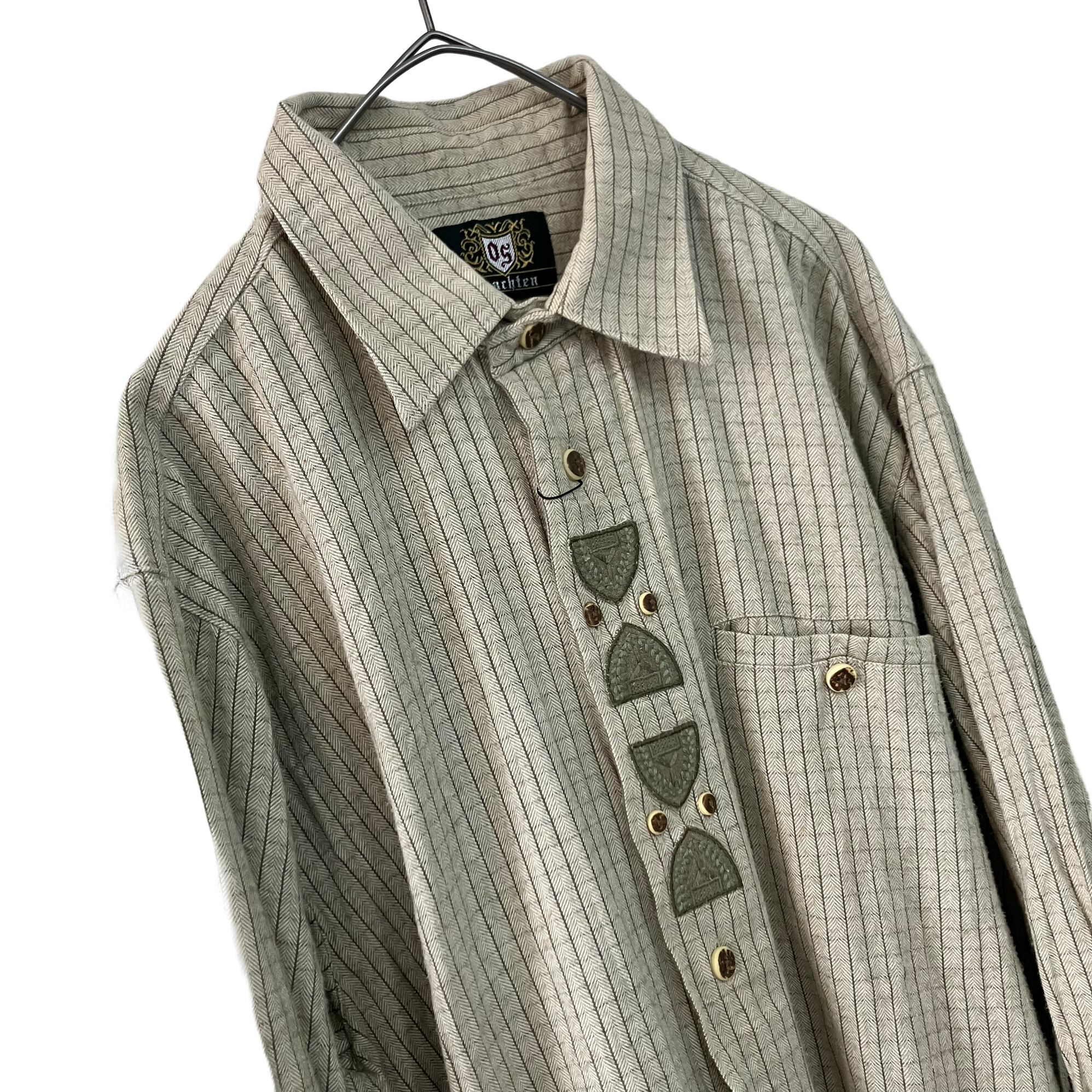 VINTAGE checked leaf button Cotton big silhouette over size wappen embroidery Tyrol Tyrolean shirtです。