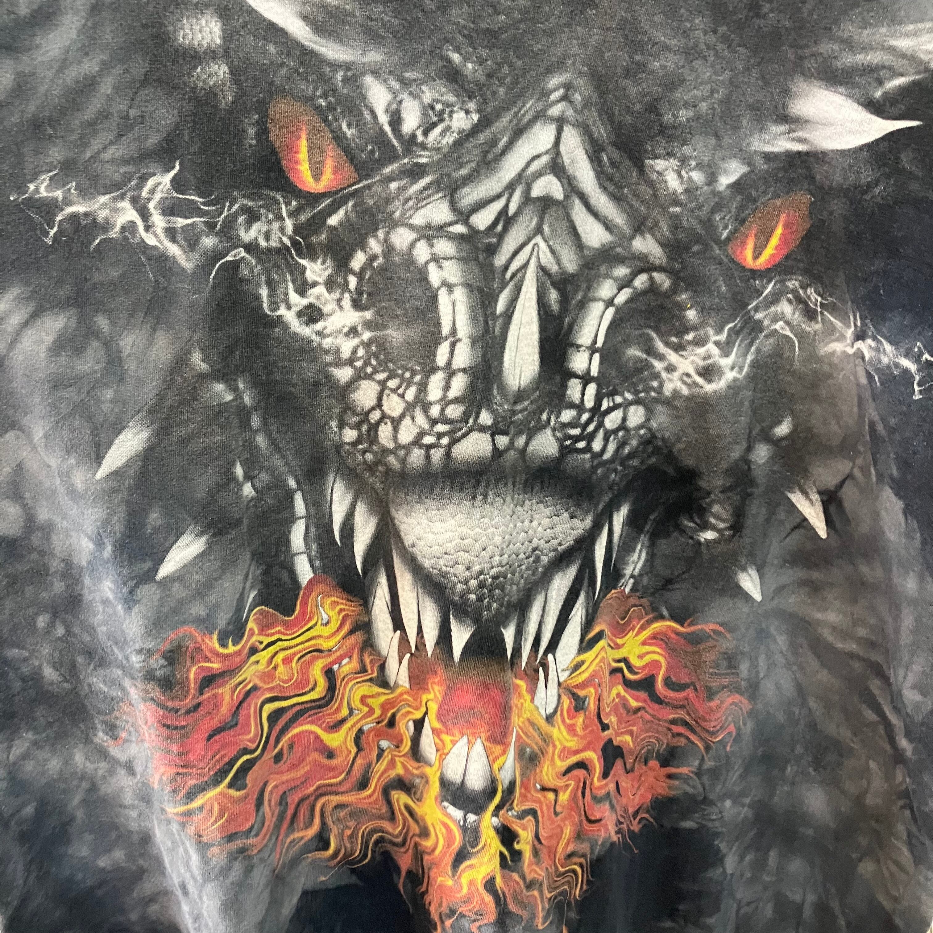 『USA製 THE MOUNTAIN doragon animal fire tie dye design big silhouette over size T-shirt』USED 古着 アニマル 動物 ドラゴン 炎 ファイア タイダイ ビッグ シルエット オーバー サイズ Tシャツ