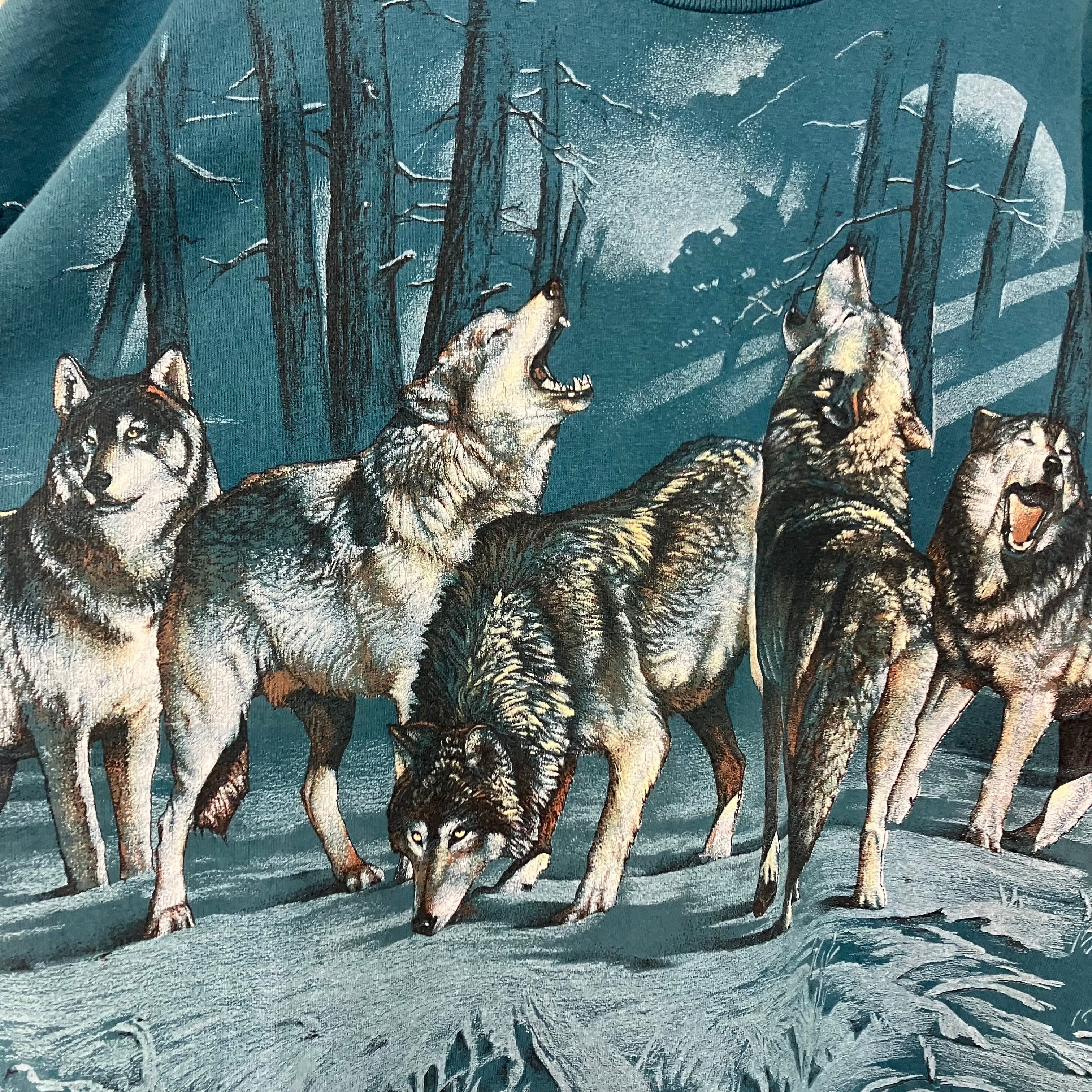 『VINTAGE USA製 wolf animal design big silhouette over size T-shirt』USED 古着 ウルフ オオカミ アニマル 動物 ビッグ シルエット オーバー サイズ Tシャツ