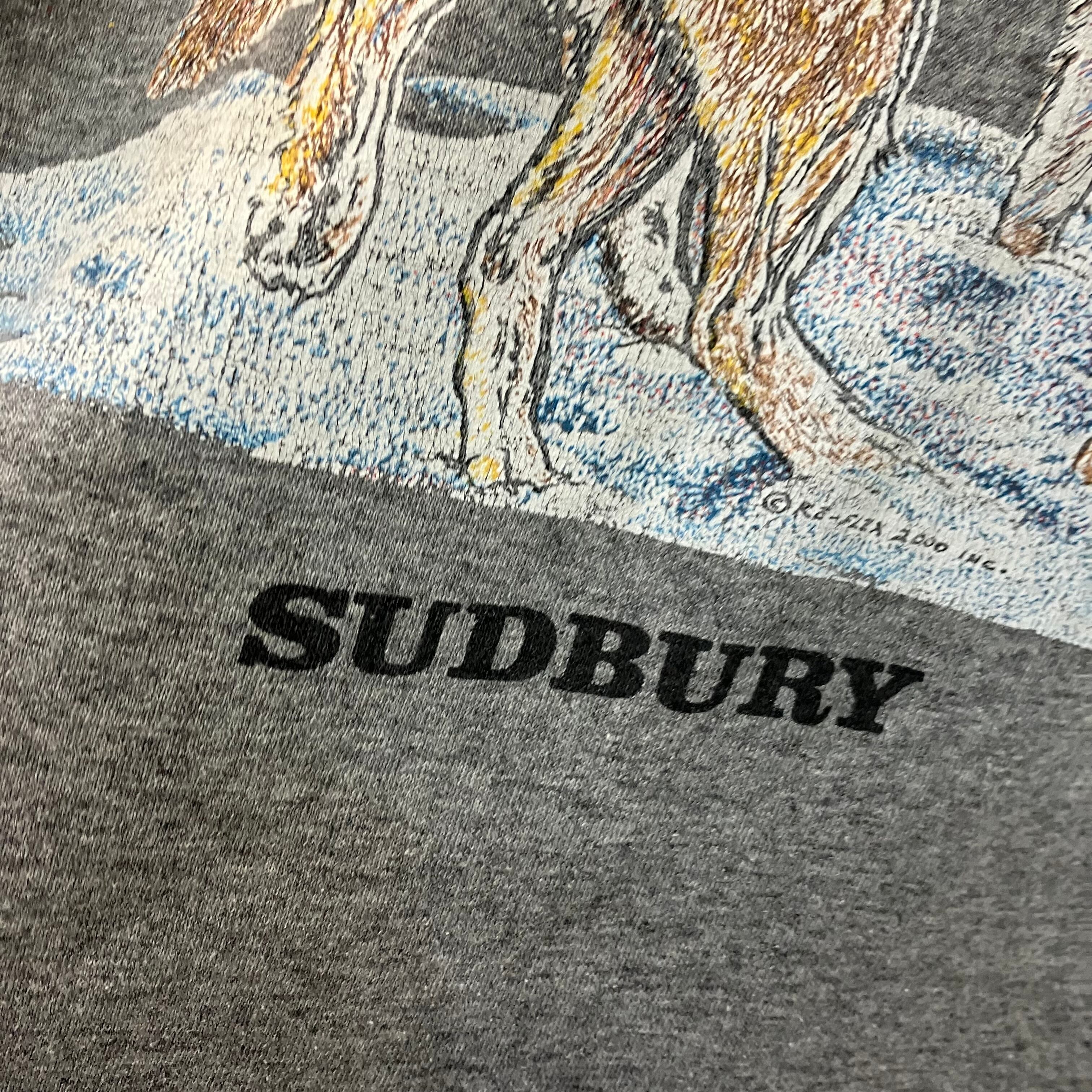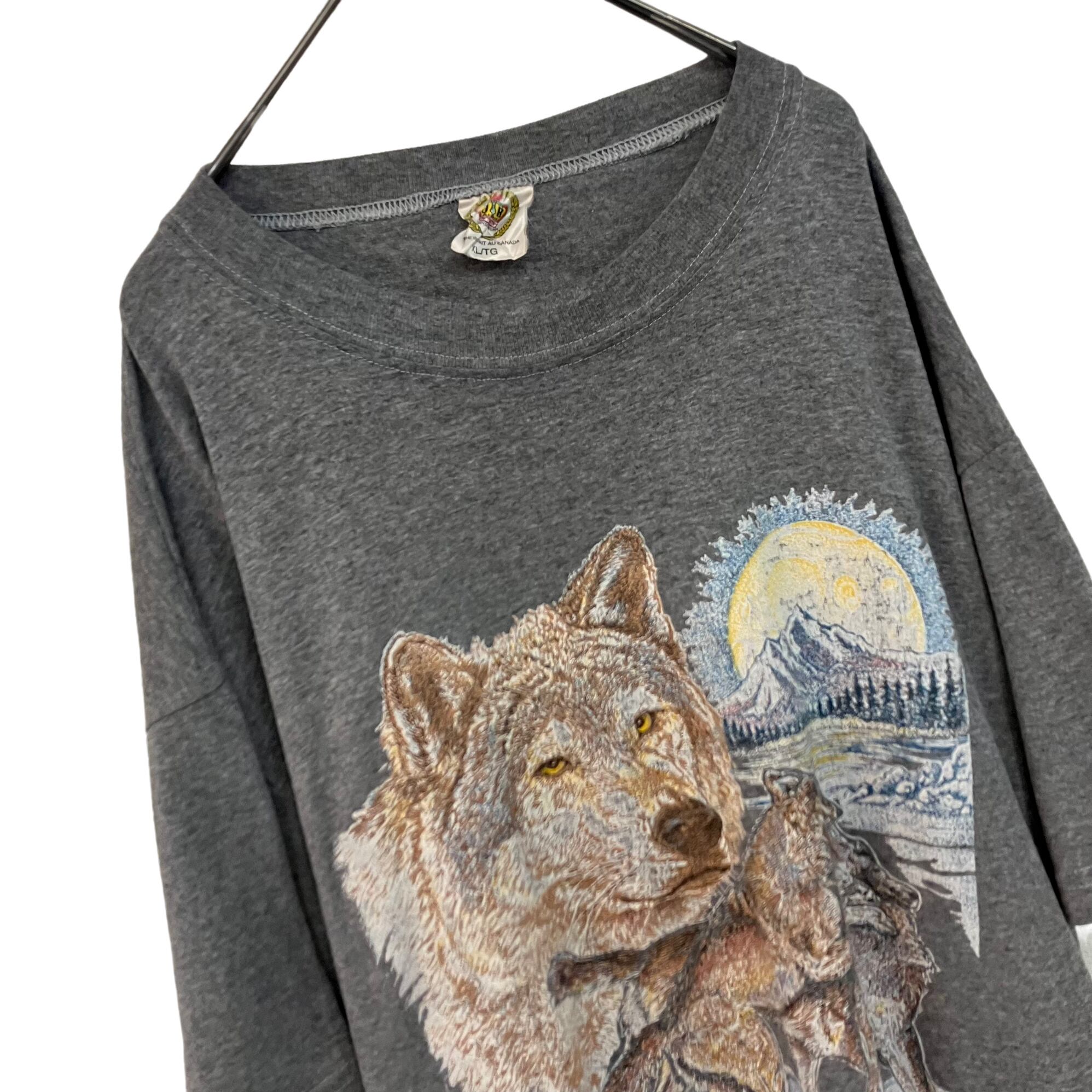 『00's VINTAGE Canada製 Wolf animal mountain moon design big silhouette over size T-shirt』USED 古着 ウルフ 狼 アニマル 山 月 ビッグ シルエット オーバー サイズ Tシャツ