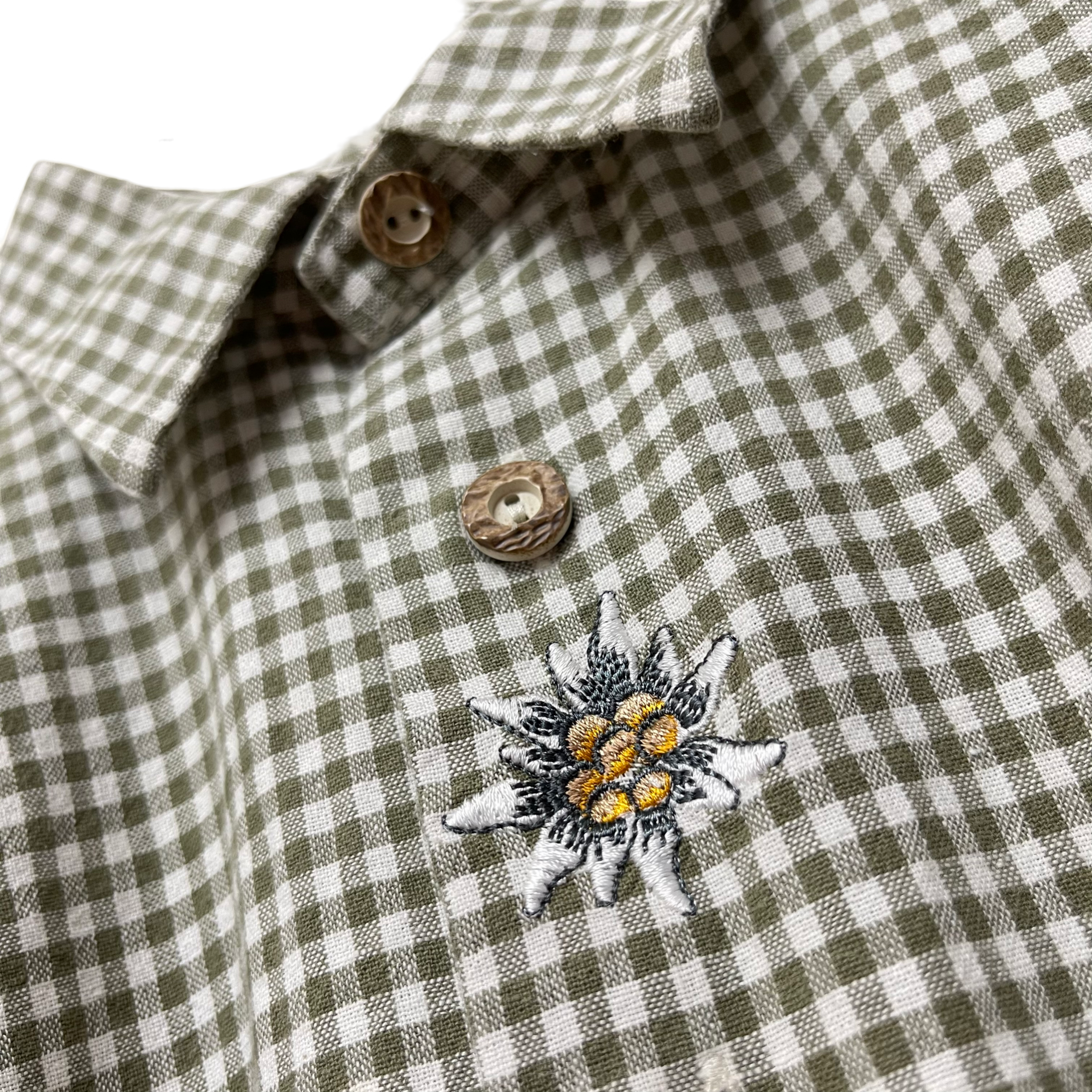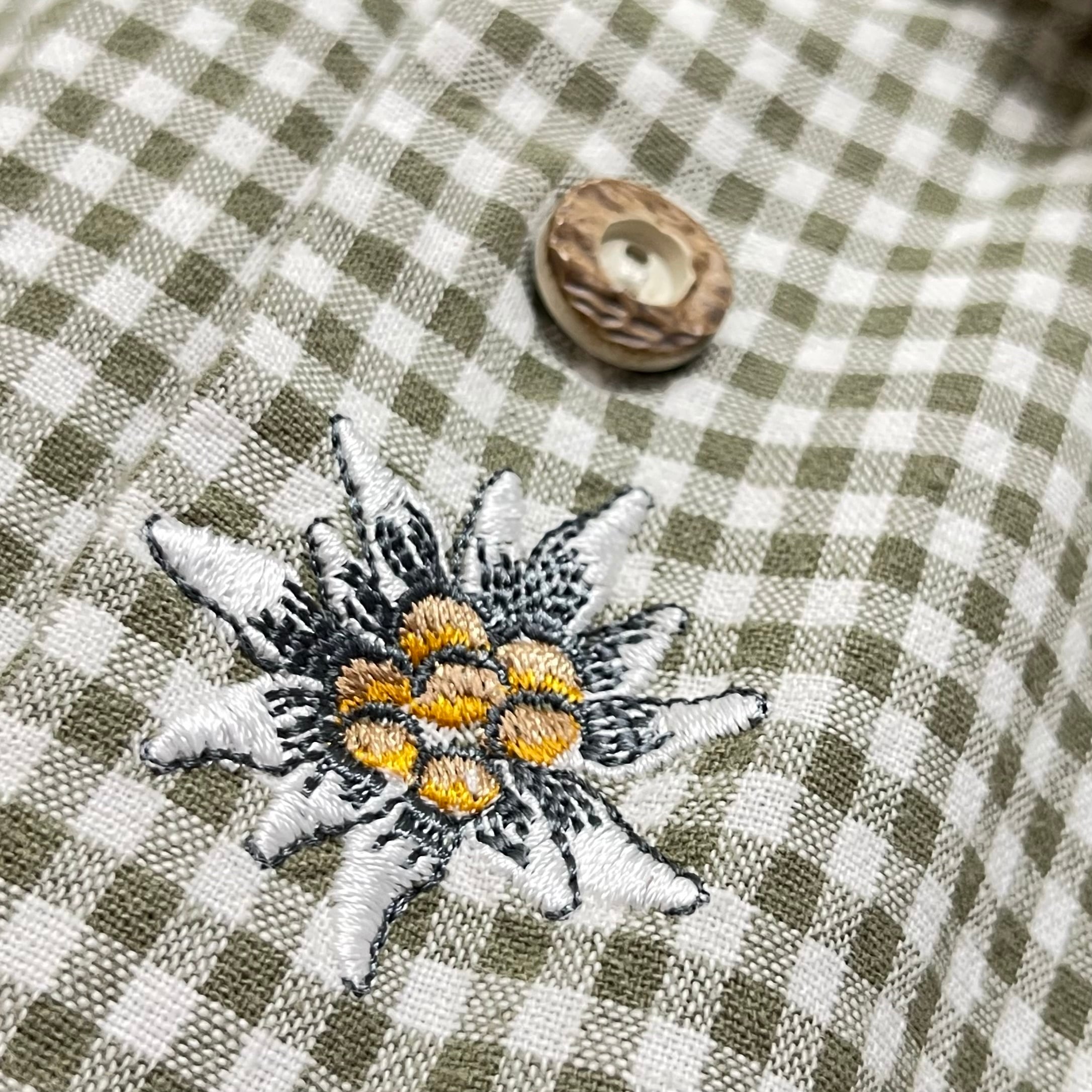 淡いグリーンのチェックが可愛いチロルシャツです。