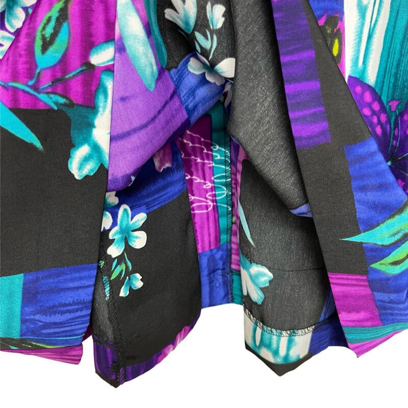 着物のような大胆なカラーリングと花柄や英字がお洒落で個性的なジャケットです。