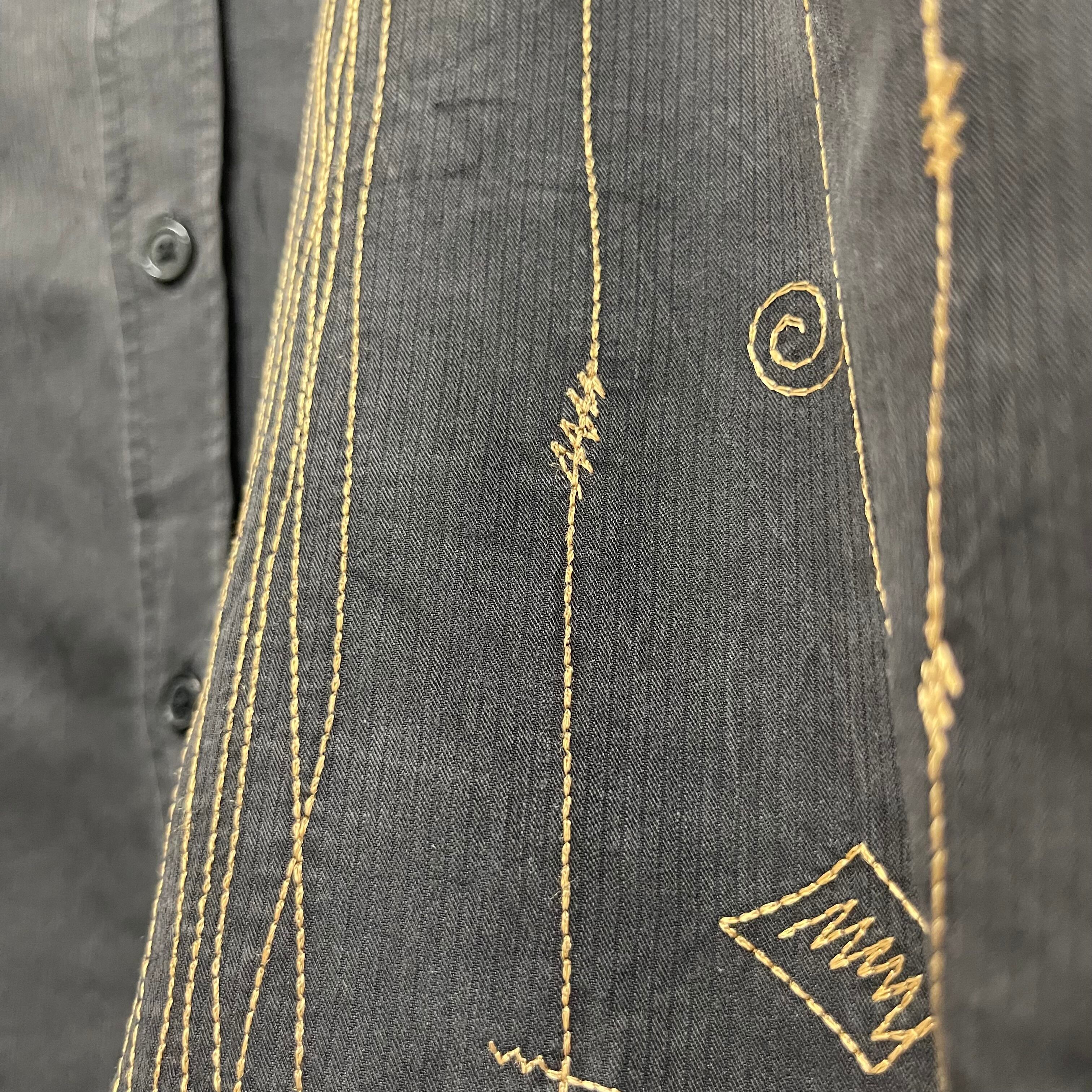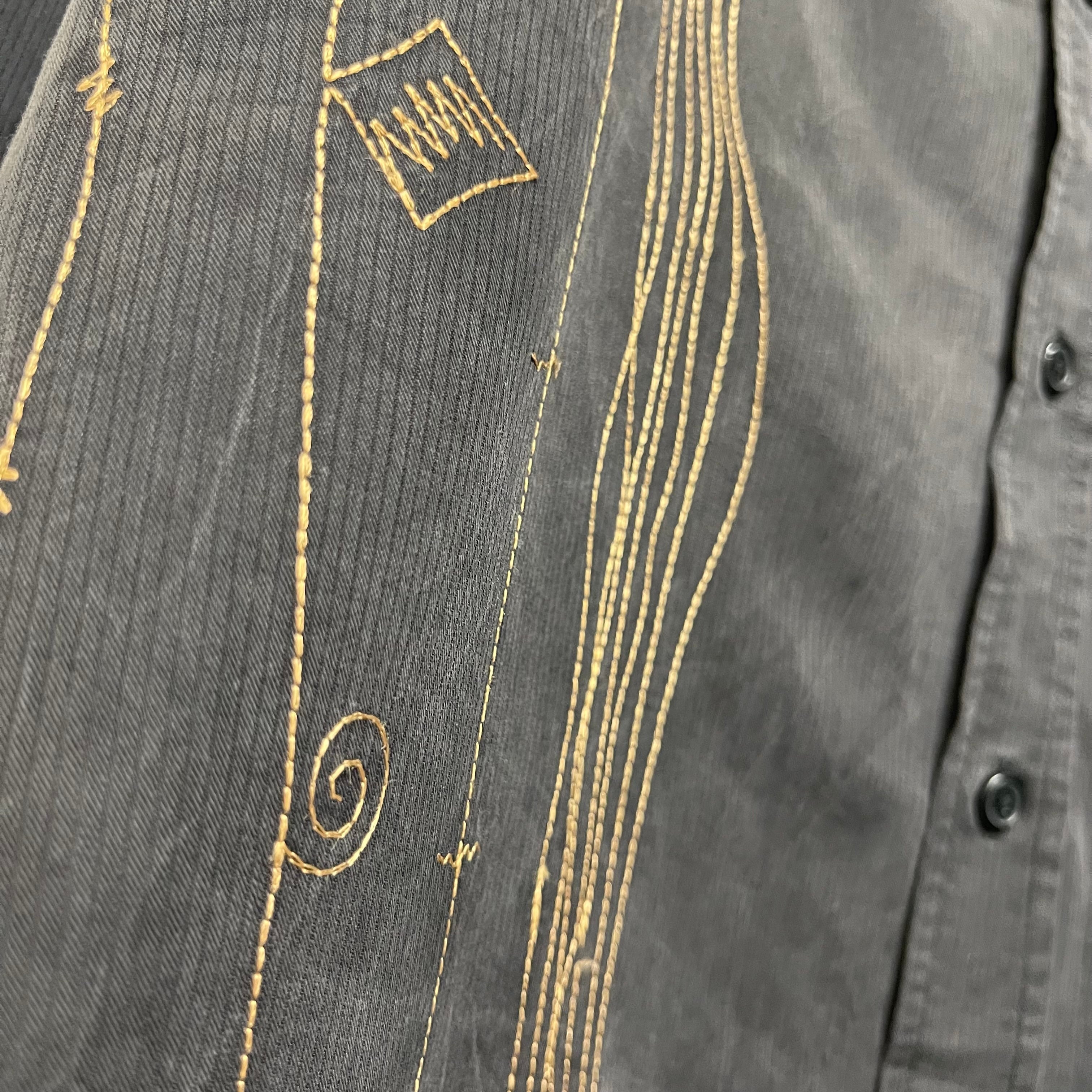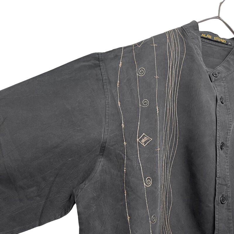 『美品 VINTAGE ALAN STUART wave embroidery stand up collar rayon big silhouette over size shirt』USED 古着 ヴィンテージ ウェーブ 波 刺繍 スタンドカラー スタンドアップカラー レーヨン ビッグ シルエット オーバー サイズ シャツ