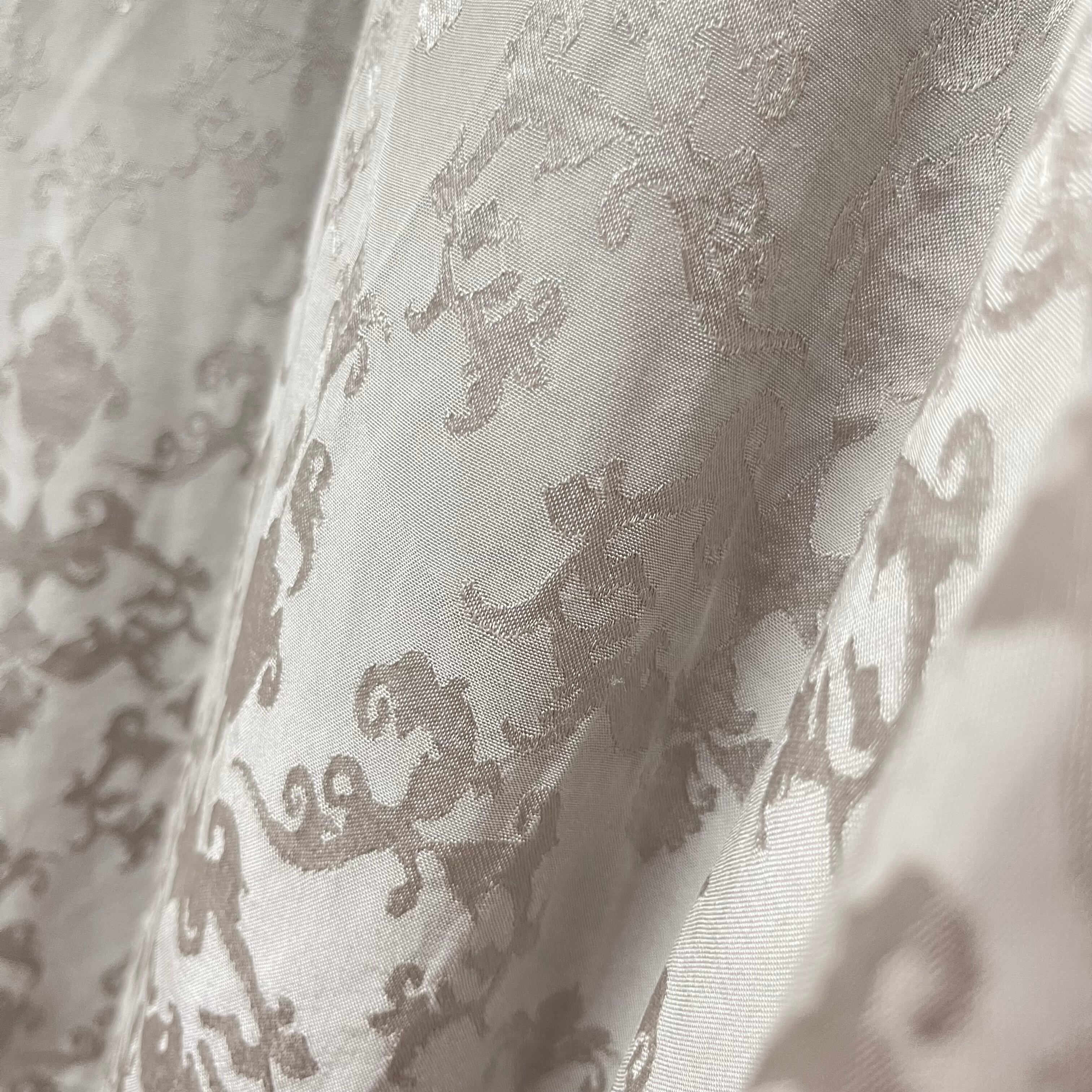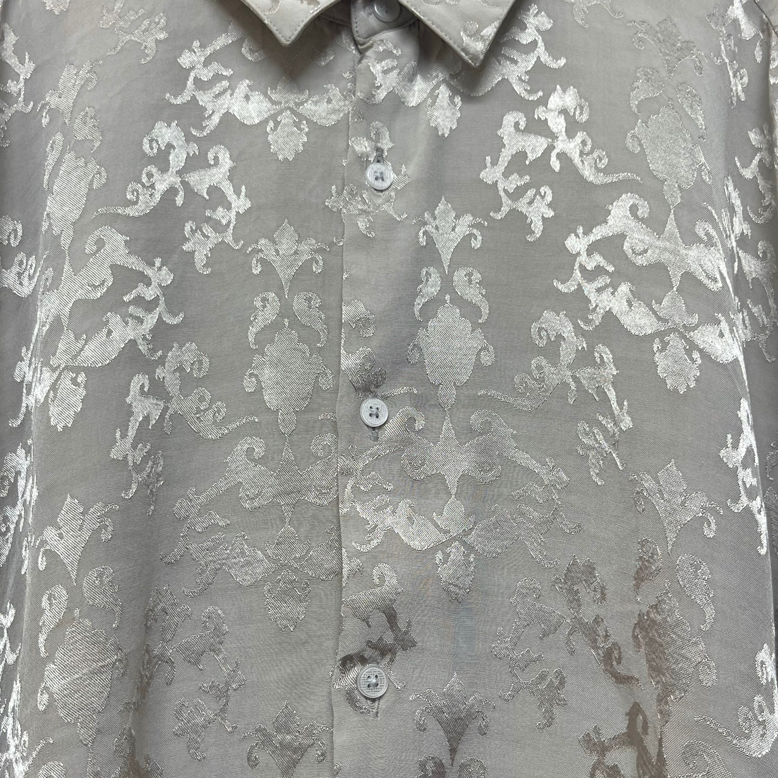 淡いベージュに光沢のあるシャンパンゴールドのようなジャガードがデザインされた美しいシャツです。