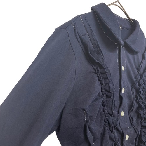 『美品 tricot COMME des GARCONS frill gather tuck draping stretch round collar shirt』USED 古着 トリコ コム デ ギャルソン 立体裁断 カットオフ フリル ギャザー タック ホワイトステッチ ストレッチ 丸襟 シャツ
